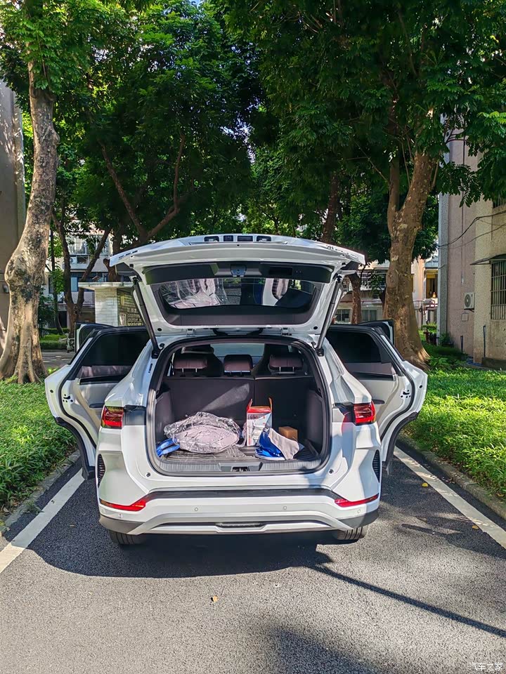 车内空间非常的大,后备箱上次旅游塞三个箱子还有很多空余位置,后排距离也很宽敞,两拳还要多的距离,也非常舒适,他们说这车不晃悠、不晕车,跟坐大沙发似的!