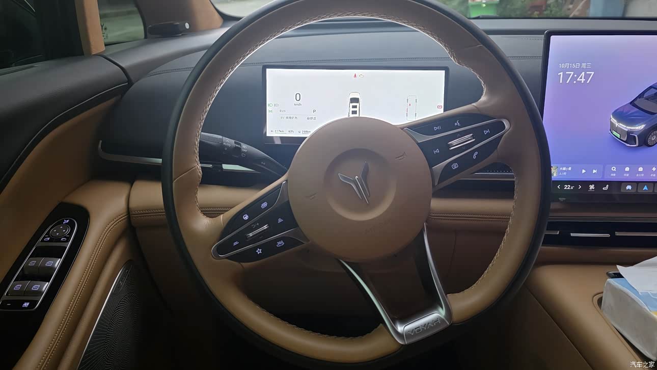 当初还担心棕色内饰容易脏,结果用了半年发现完全是多虑了,日常打理起来很方便,稍微有点污渍用湿抹布一擦就干净,不像浅色内饰那么娇贵。车门和中控区域的软包材质,触感细腻,就算不小心碰到也不会留下划痕。还有一些小细节,比如车内的储物空间设计得很合理,扶手箱超大,能装下不少东西