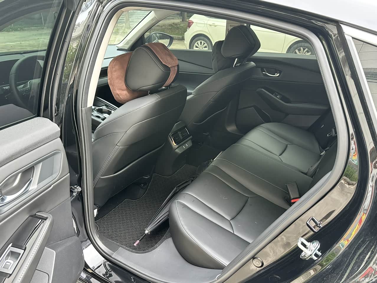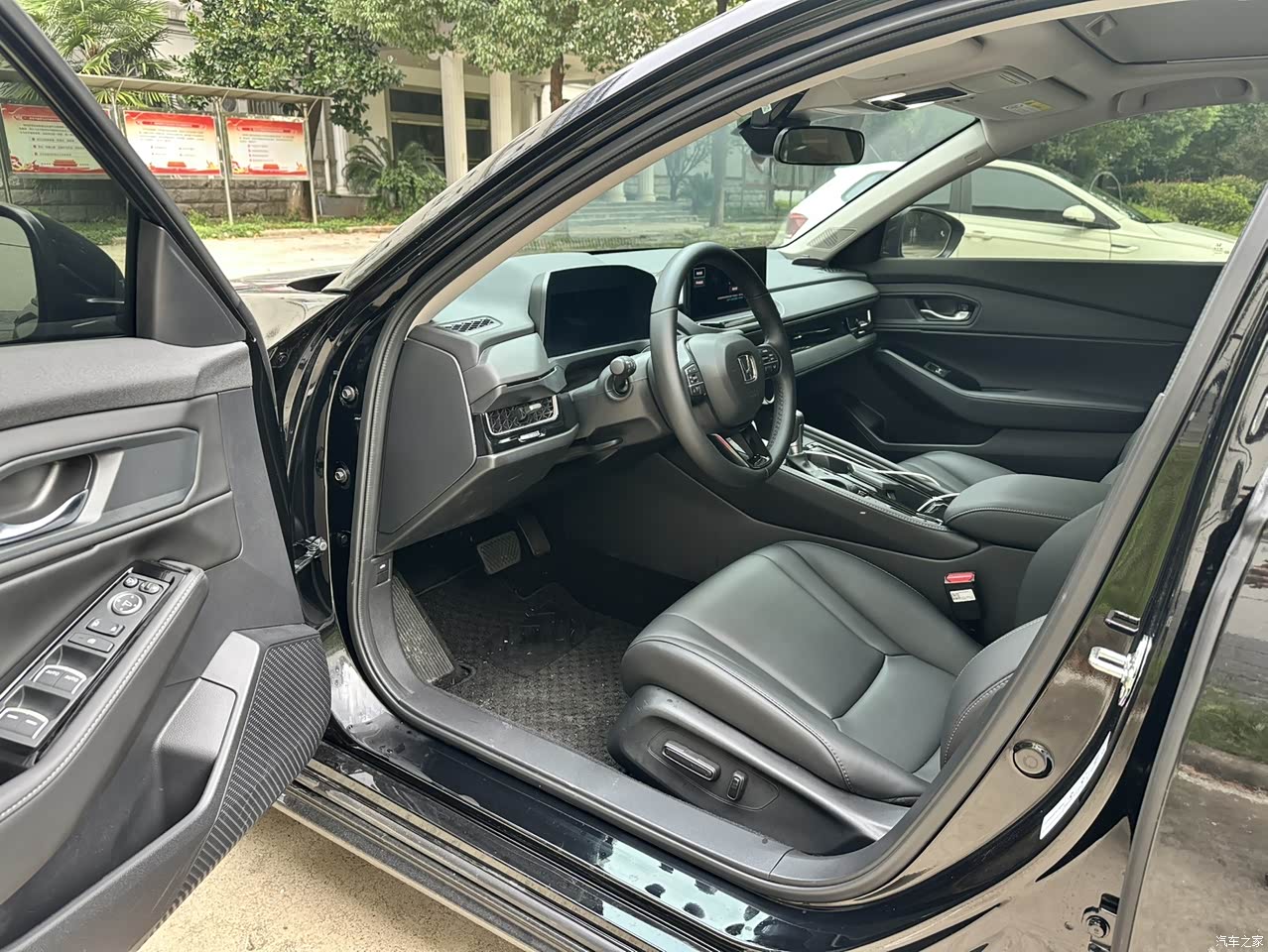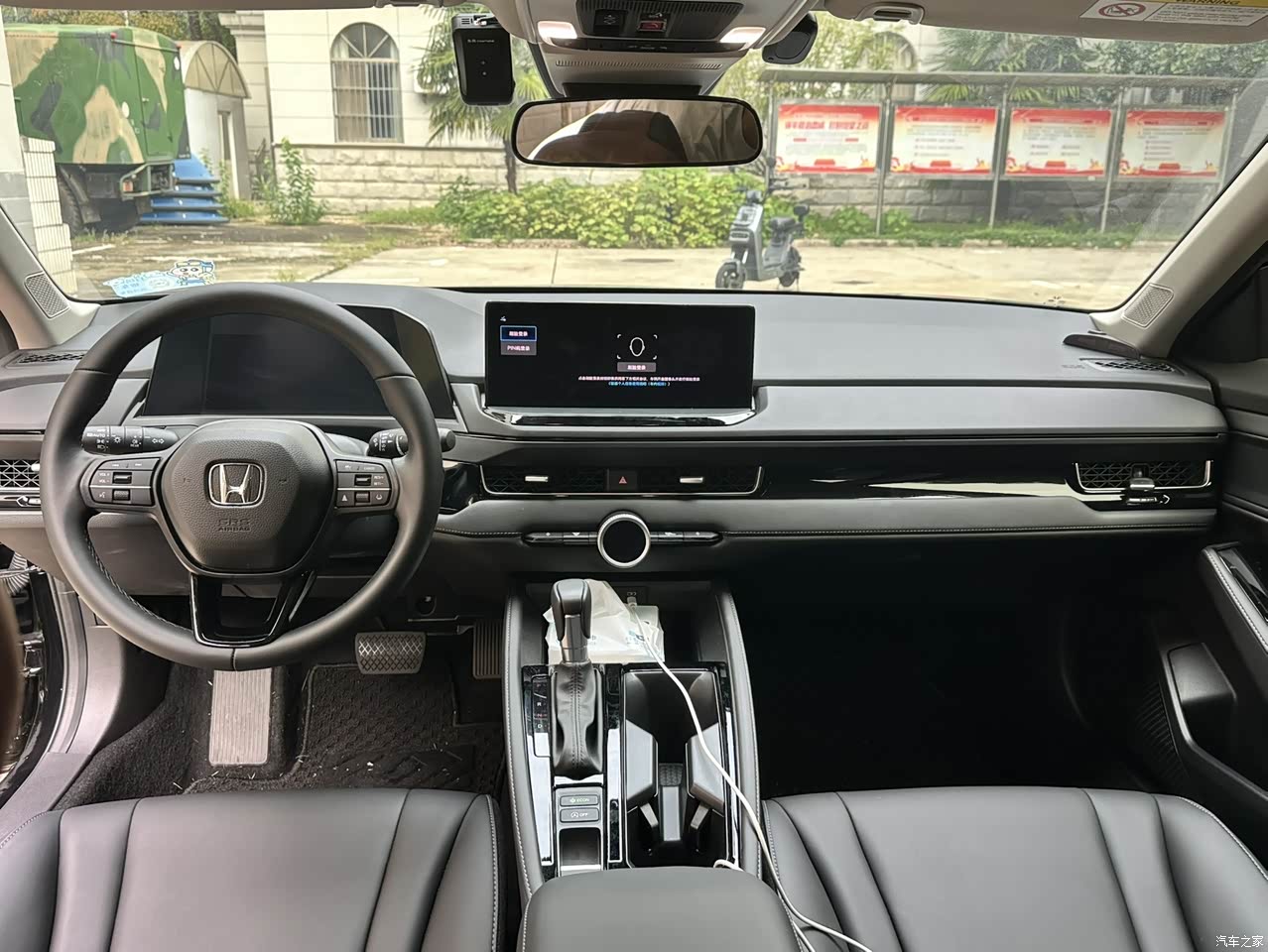 一拉开车门就感觉到它的简洁又大气的风格,中控台大部分都用的是软性的材质,上面还有一些缝线的装饰,摸起来软乎乎的,看上去也有档次。方向盘也是真皮的,手感很好,上面还有多功能按键,操作起来也很方便。屏幕也挺大的,有12.3寸的中控屏和10.2英寸的全液晶仪表,显示也清楚,偶尔会卡吧,还支持无线投屏,能方便地连接手机。空调是双温区,钮做的也很有质感,旁边还有两个Type-C的充电口,使用很方便。它的座椅是仿制皮质的,看着有点高级,但是座椅有点硬,跑长途会累,主副驾驶都能电动调节,调起来也很顺滑。不过座椅没有打孔,夏天可能会有点闷屁股。后排也有扶手和杯架,还有空调出风口和充电口,很好很好。