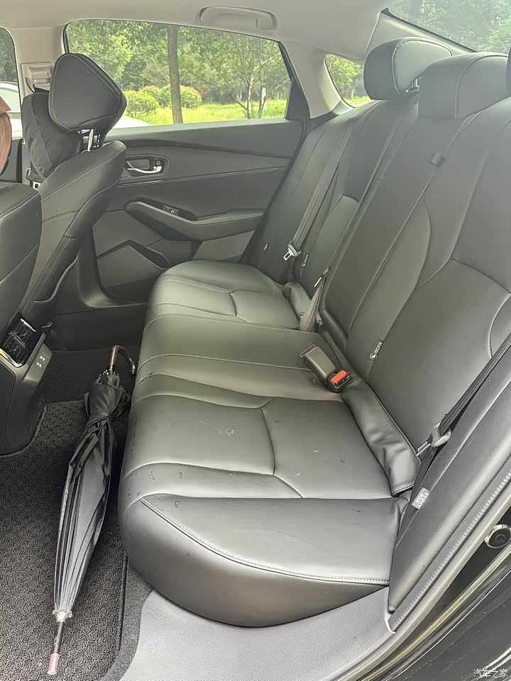 空间比较大,前排电动座椅调节,2830的轴距,后排空间比较宽裕,带家人朋友都比较合适,后排腿还能有两拳的距离