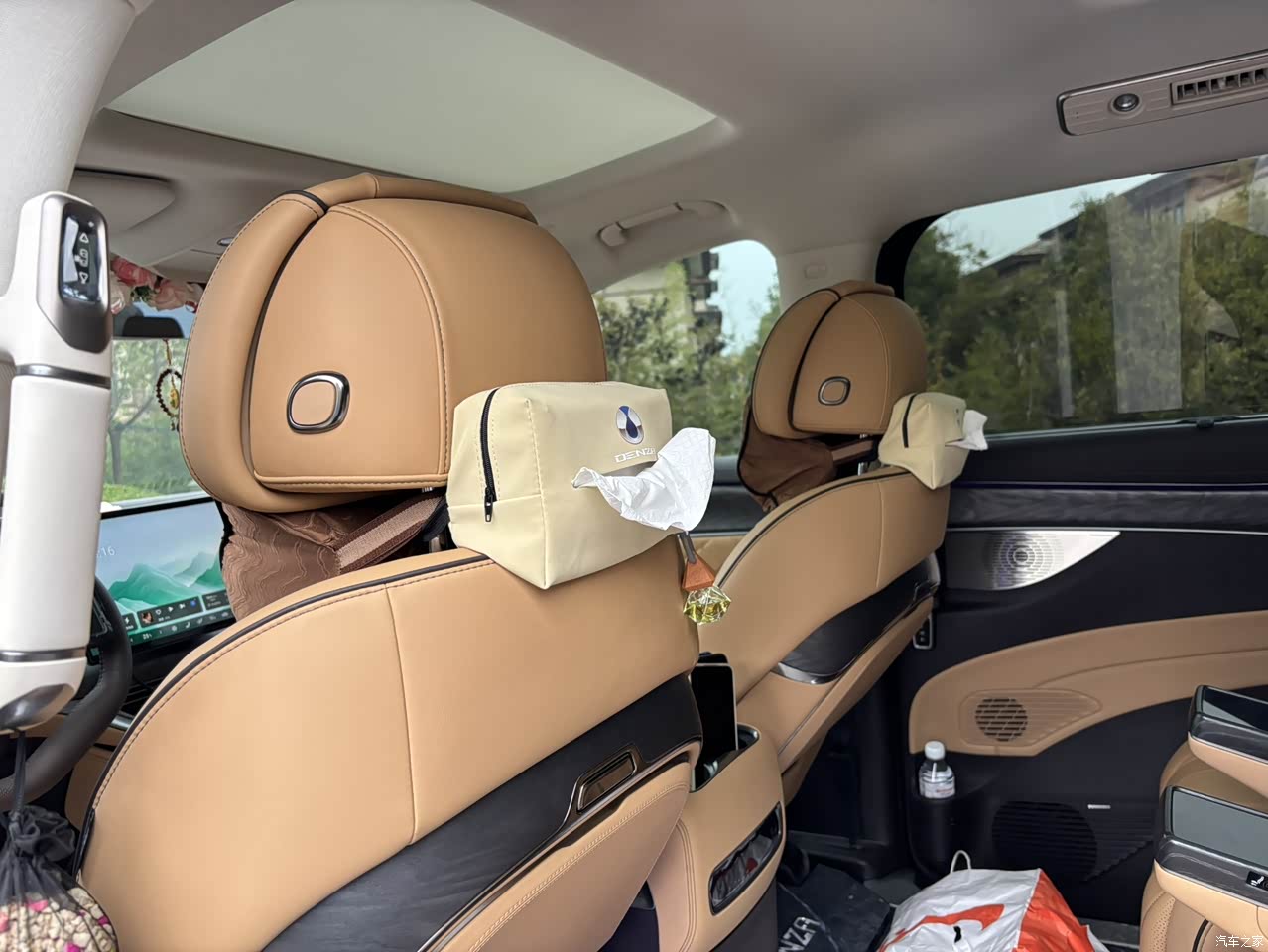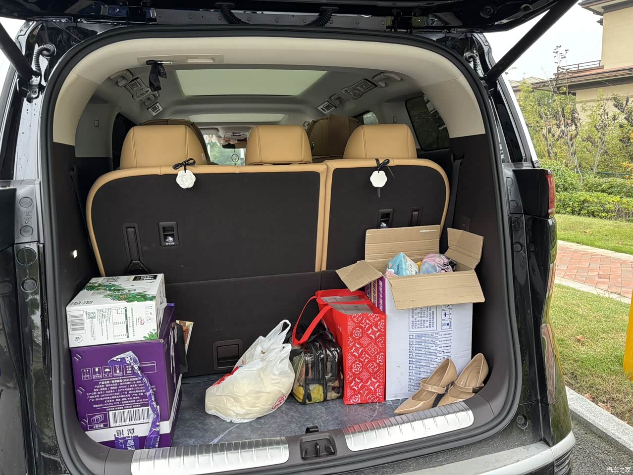 空间非常满意!就是冲着空间选择了D9,7口之家一车解决,并且储物空间也很丰富,不管是前排二排还是第三排都有储物的地方,后备箱在不放倒第三排的时候也够用,第三排一点也不挤,接孩子他们也很喜欢坐第二排,最满意的就是空间了