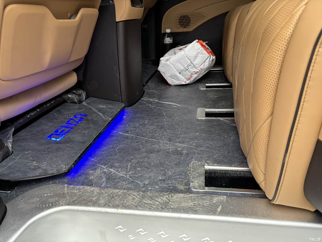 内饰也不错,木质加上皮面看上去也很有档次,我们自己改装了一下地板,孩子经常坐也方便打扫,座椅舒适度也很好,多项调节和按摩功能爸妈也很喜欢,不错