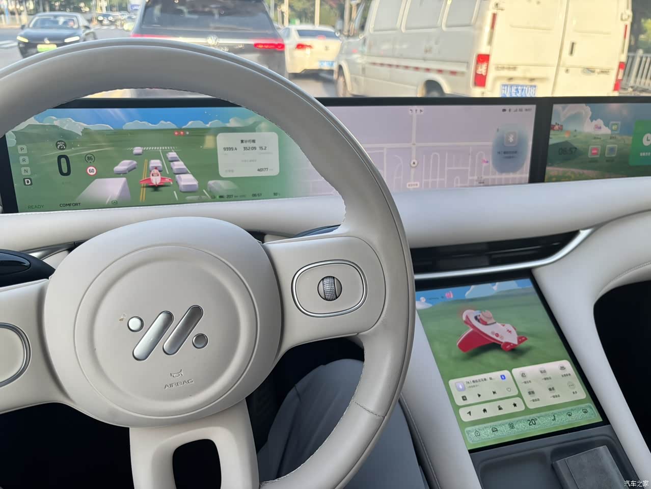 对比我上一辆开了2.5w公里的老毛豆Y,首先智己的方向盘没那么重,特斯拉的调教偏运动一些,半幅方向盘视野很好,用习惯了之后还是很棒的。两台车的驾驶体验都不错,动力足,转向稳,刹车平,这块我都比较满意。 乘坐体验 从我爱人反馈,特斯拉的座椅舒适性略差(也是当时换车的一大理由),智己的座椅包裹性很好,有支撑感,我这个主驾还有一个腿托,还是蛮舒服的。两个车,她做后排的话都有些晕车,不过智己有一次OTA了舒适制动,再加上我关闭动能回收的话,她就没有晕车感了。