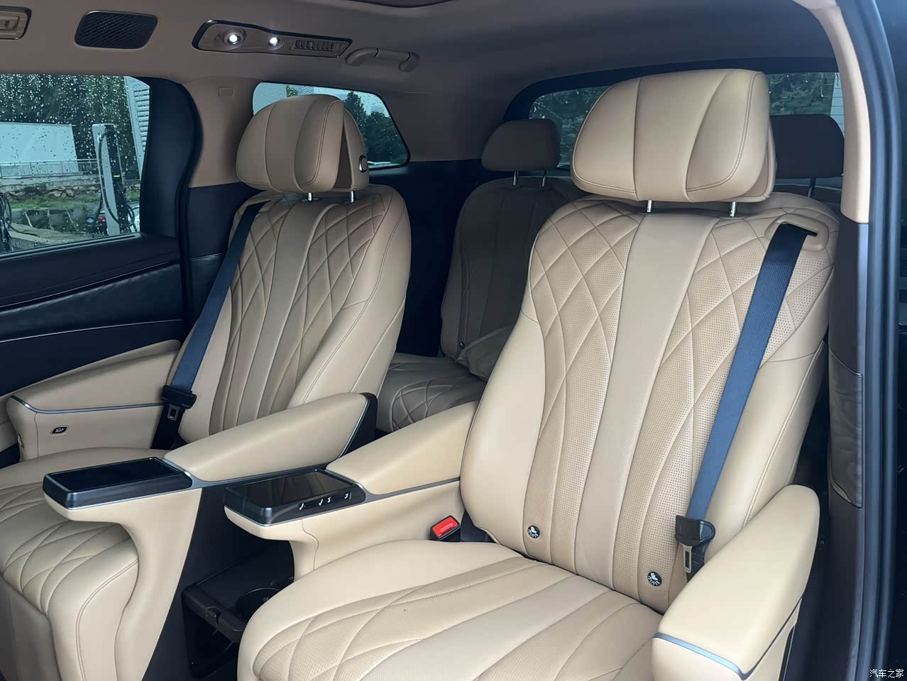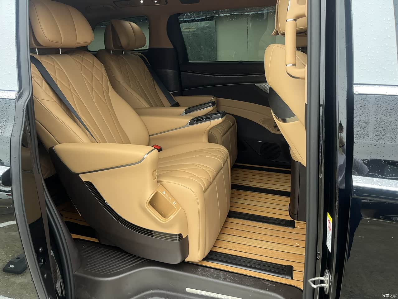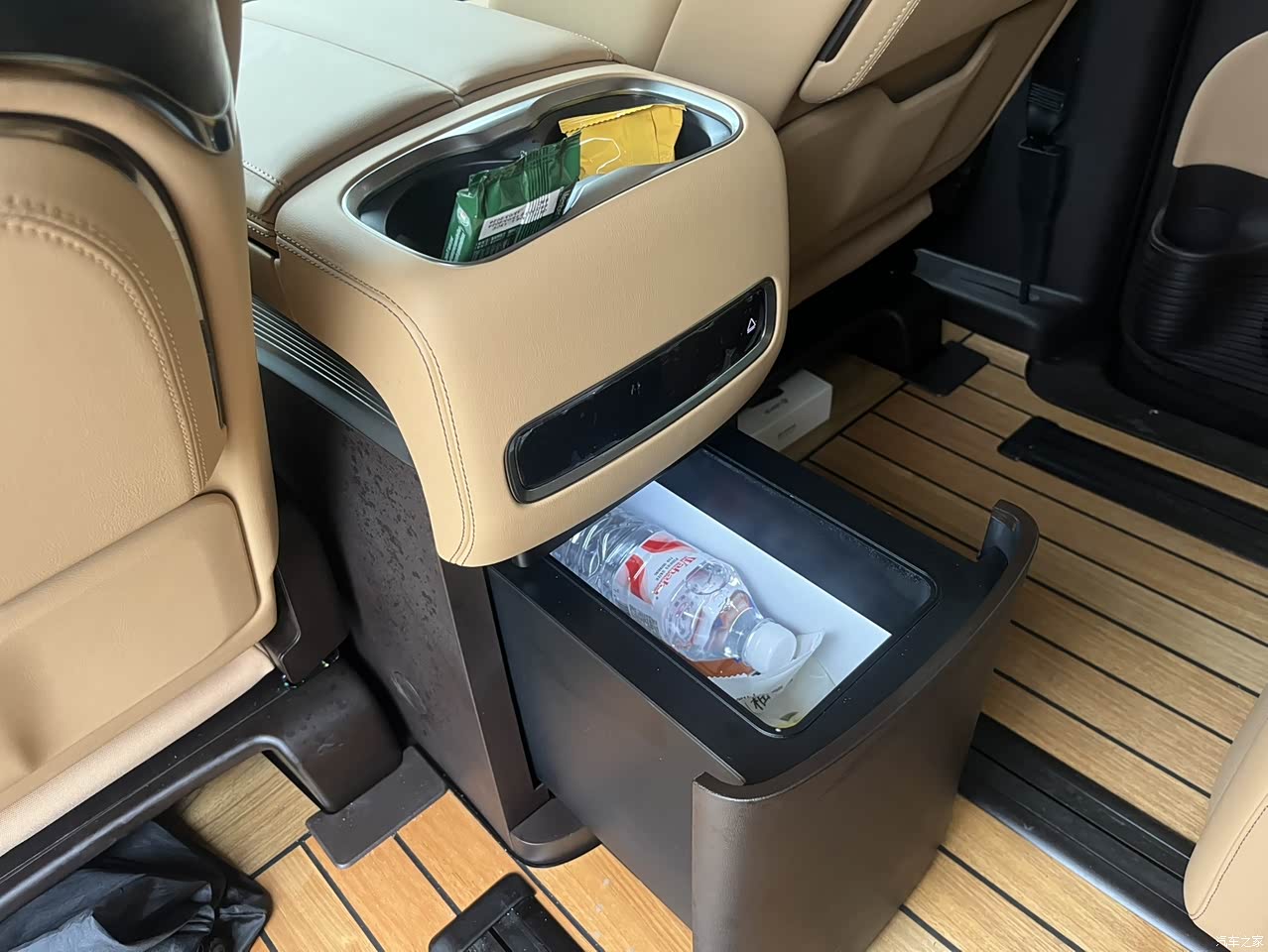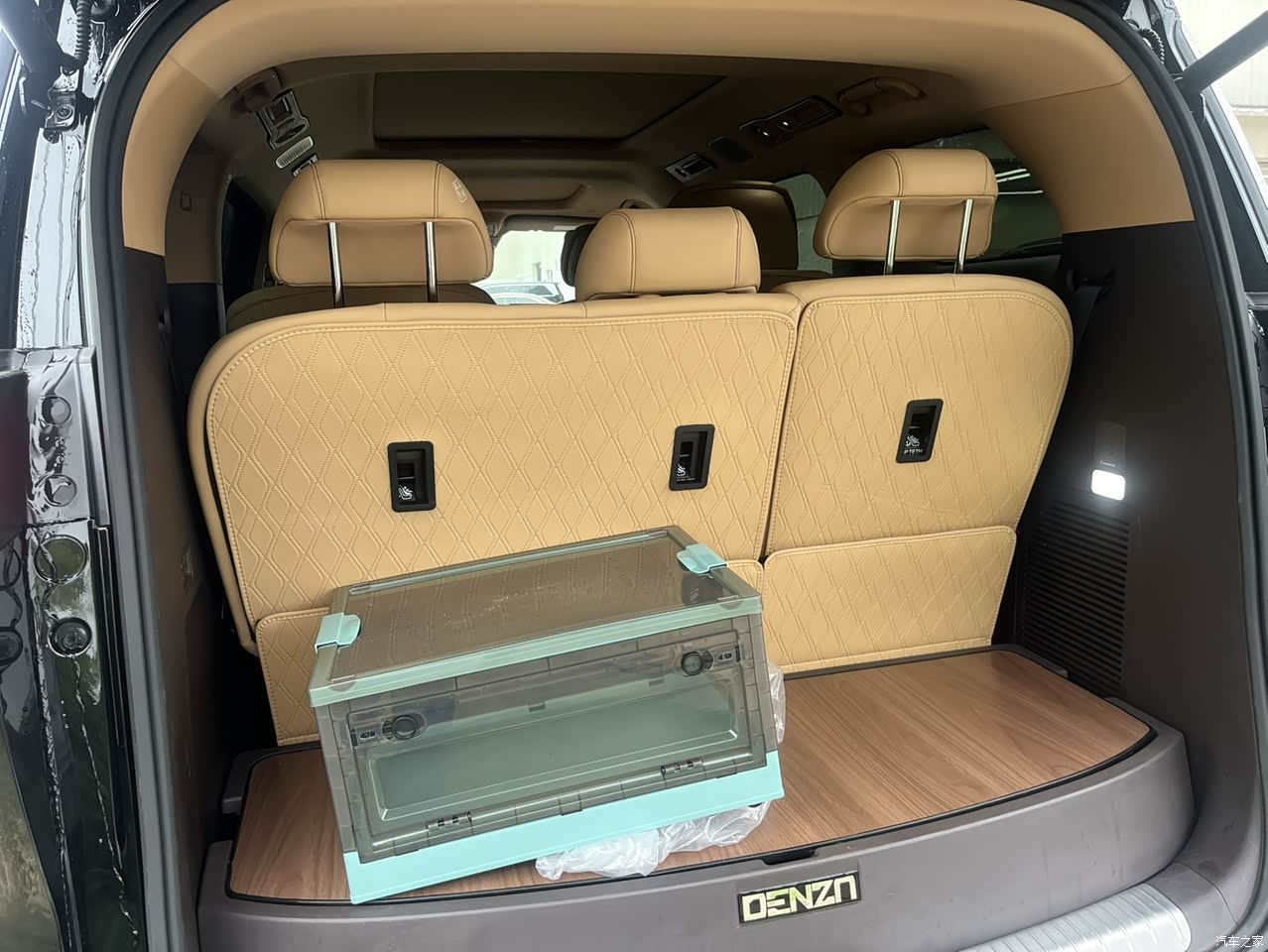 咱开饭店的,空间和能耗就是利润,既要装得下食材厨具,又得让客人坐得舒服。经过我实测,D9这空间,拉货接客两不误,开了俩月,满员接送客户也不挤,折叠后后备箱能塞三箱信阳毛尖加两筐蔬菜,上次拉新买的羊肉切片机也轻松装下。第二排零重力座椅太实用了,客人喝醉了调平躺下休息特舒服,语音喊"打开座椅通风"就能启动,老人小孩也会用。考虑到清洁,我刚提车就去装了好打理的木地板,还专门挑了和座椅一样的颜色,大家看看怎么样?