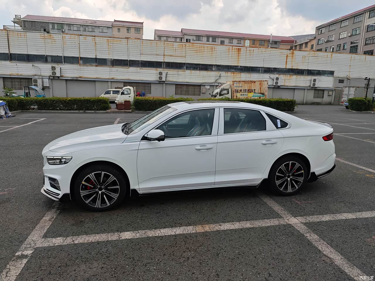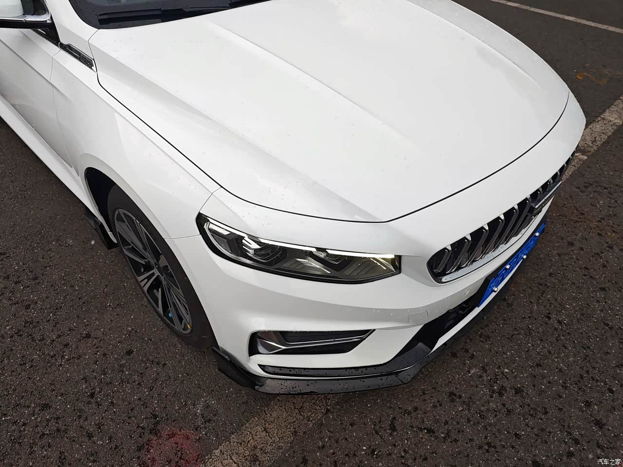 外观设计兼具运动与沉稳,大尺寸格栅搭配亮闪闪的LED大灯,看着很有辨识度。白色车身搭配运动套件显得格外精神。侧面线条流畅,引擎盖上隆起的钣金线增添了力量感。