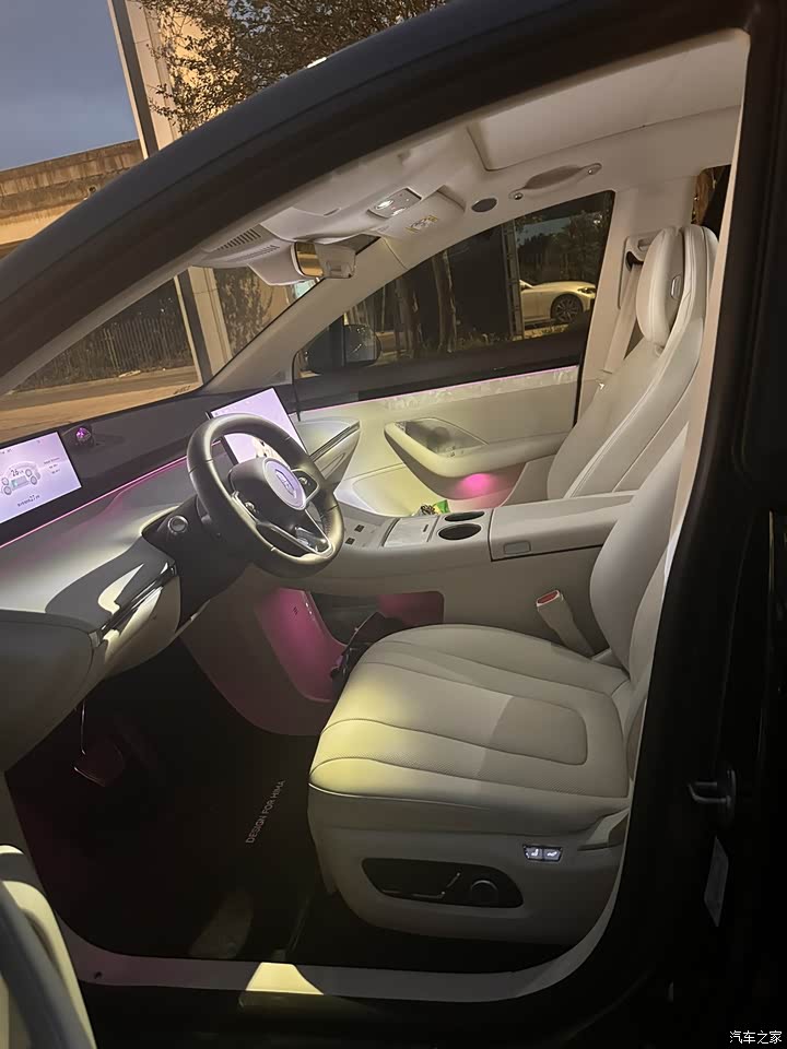 内饰选的是紫杏色。贝母真的很高级!座椅很舒适。选装了座椅通风,加热,按摩,效果都不错。随着音乐律动的氛围灯,会在地库或夜晚自动开启,很梦幻,情绪价值拉满。都说老款空调制冷不行,新款不存在这个问题制冷效果很棒,一档基本静音,还能选择避人吹,在车里午睡非常舒适。
