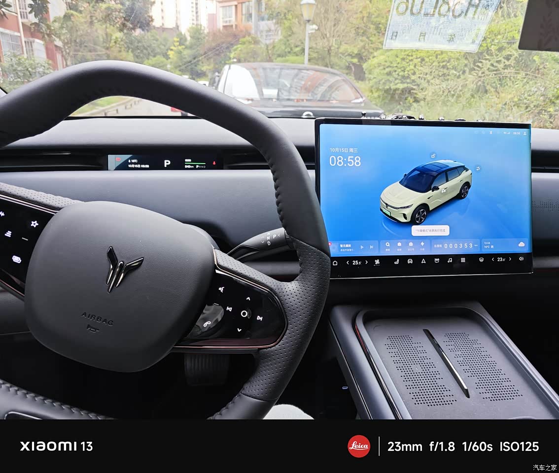 内饰是灰色的,坐进去感觉很清爽,顶棚是织物的,没那么高级,不过手能碰到的地方基本都是软的,新车味道不大,对家里有小孩的比较友好,屏幕很大,那个OLED滑移屏用起来就像个大平板,骁龙芯片反应也快,座椅功能也全,通风加热按摩都有,夏天坐着舒服,堵车的时候也能按一按。