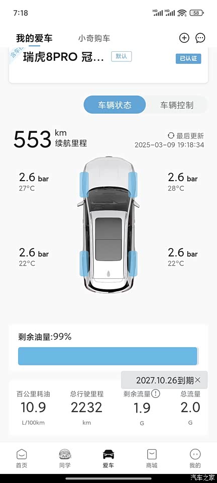 我之前开的大都是小排量的面包之类,对油耗不敏感,换成瑞虎8pro2.0后,10.9L/100Km的油耗还是有点吃惊的,好在随着首保结束,油耗也在逐步降低,二保后油耗降至9.6L/100Km。平时我都骑电驴,只有周末和节假日开车,迄今为止已经跑了8000多公里,细算下来一年开车70天左右,一天跑100多公里,油费70元左右。