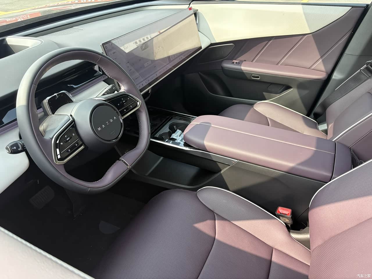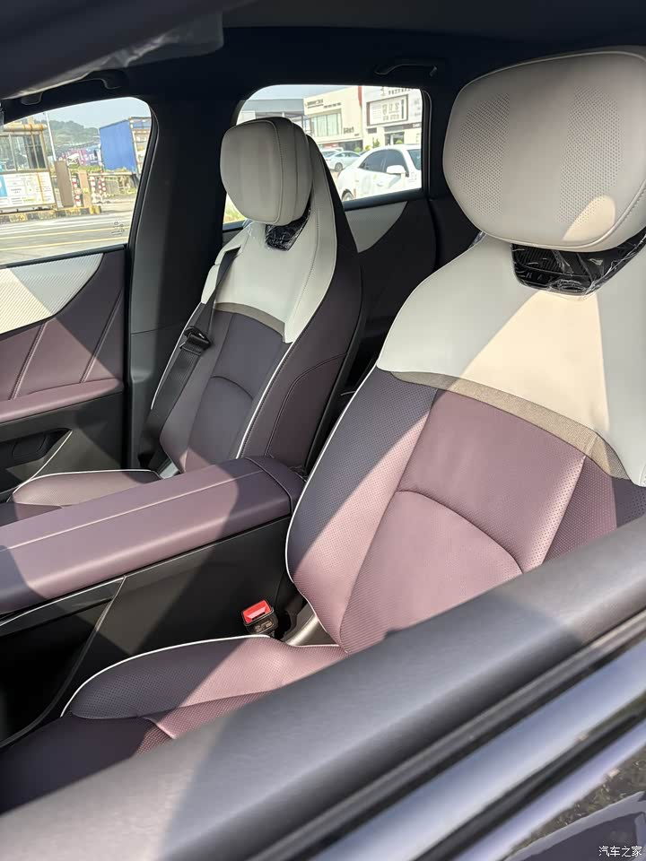 内饰不管我喜不喜欢,我老婆是真的超爱!紫色是她的最爱!白紫金的撞色搭配新新颖,未入手前也去看过很多新能源电车,这样的内饰也是头一份,很出众,用料材质也很有触感,一体大屏也很高级,反应速度很灵敏。