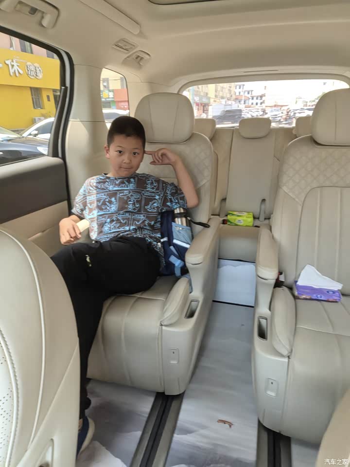 坐进车里第一感觉就是没什么新车的那种异味,这点对家里有小孩的来说特别重要,说是用了母婴级的环保材料。我选的棕色内饰,看起来有档次,手感也不错。第二排的独立座椅功能很全,加热、通风、按摩都有,家里老人坐长途都说很舒服,能缓解疲劳。