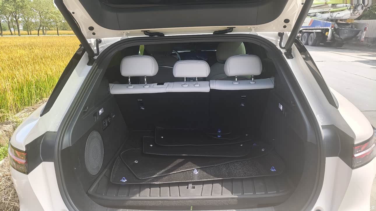 空间上这车轴距有2925,我主驾调好位置,后排的人腿还能伸得开,地板是纯平的,中间坐人也挺舒服,后备箱有652升,放个婴儿车、一堆玩具都塞得下,后排座椅还能放倒,空间一下就变成1588升,拉个电风扇都没问题,储物空间也多,全车有三十多个储物格,门板、中控、扶手箱,手机、钥匙、水杯都有地方放。