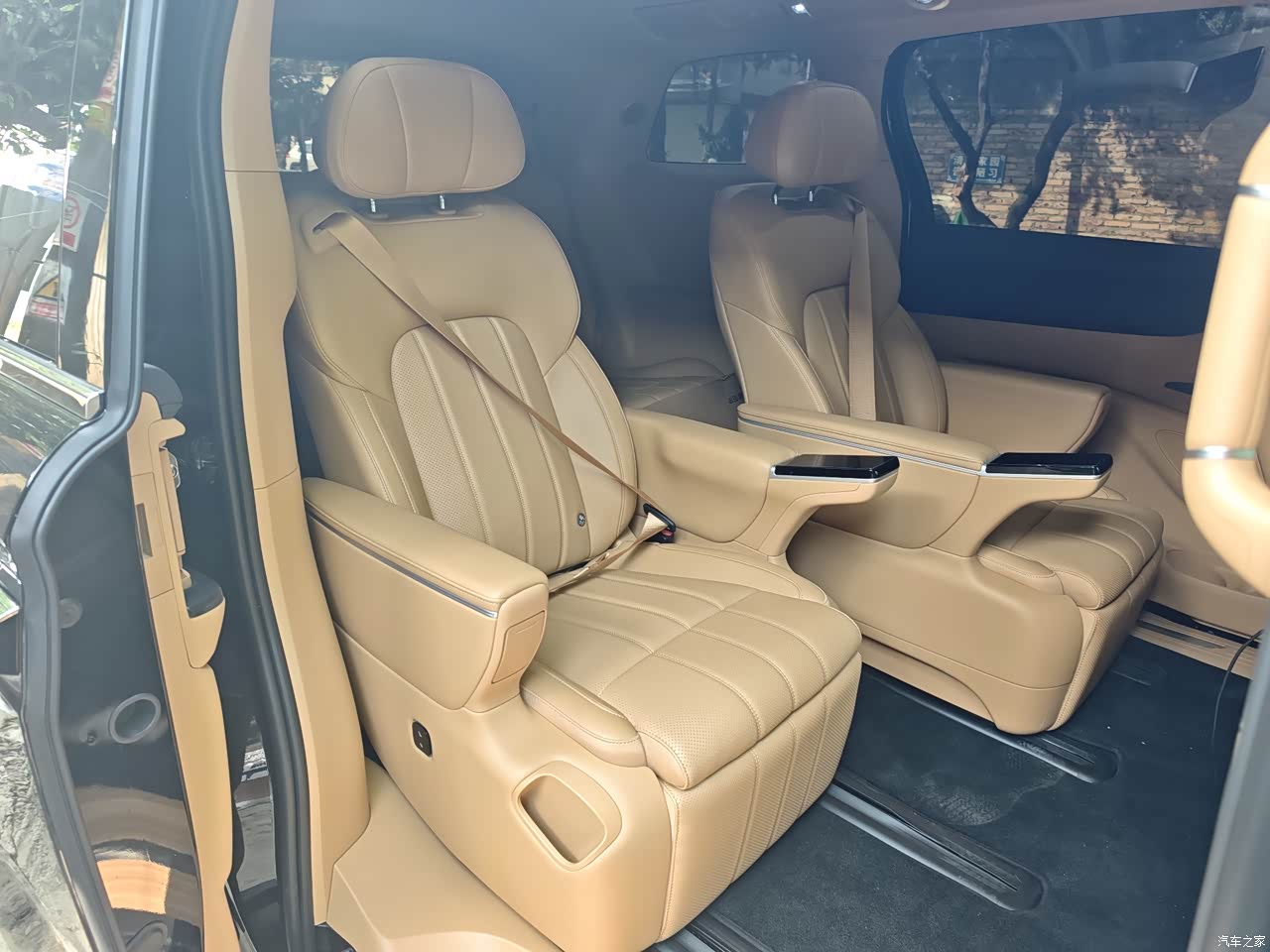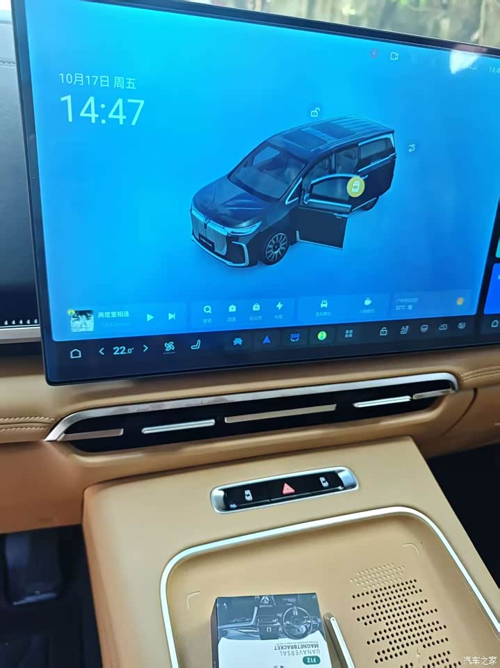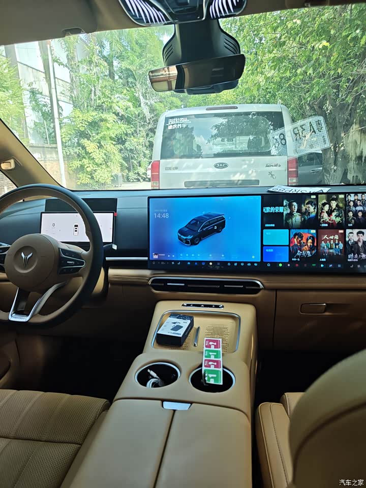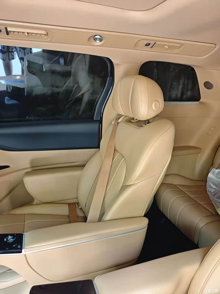 车内没什么新车味,这点对家里有小孩的家庭很友好。我选的棕色内饰,氛围温馨。中控台用了不少软性材料,但一些细节部位塑料感还是有点。第二排航空座椅是精髓,通风、加热、按摩全配齐了,我爸妈坐长途都夸舒服,按摩功能确实能缓解疲劳。不过我这个版本没有配备氛围灯,晚上车内氛围感稍差一些。座椅的包裹性和柔软度都不错,长时间乘坐也不会累。