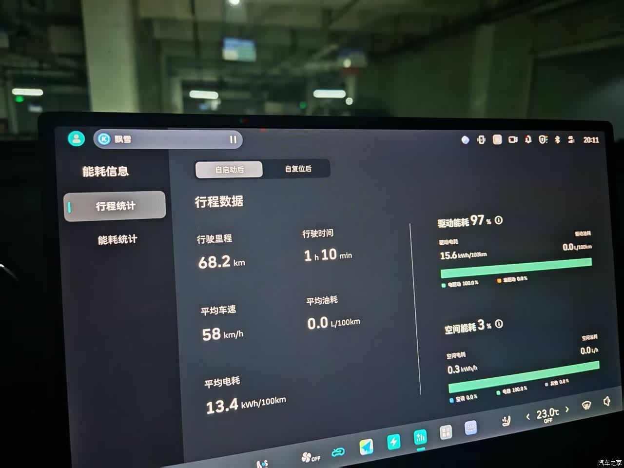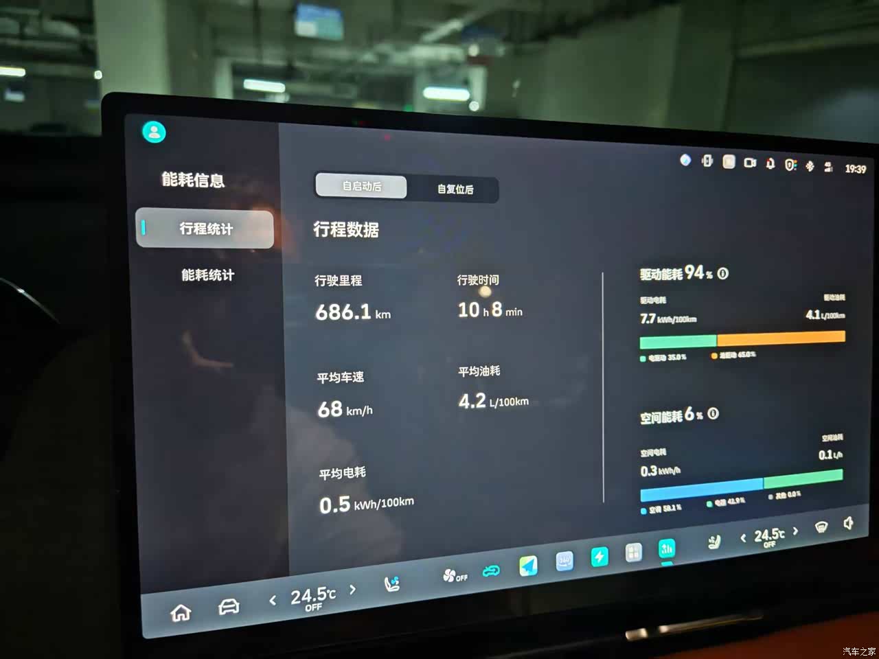1、标准、纯电优先、动能回收弱,我经常跑的路,单边68公里(无高速)去程基本消耗38~42%的电,回程基本34%~38%;对应的CLTC续航,去程实际里程68,表显减少75~80,回程表显减少58~68。2、标准、智能混动、动能回收弱,也是我经常跑的路,表显油续航里程与实际里程基本在1.5:13、国庆节期间跑了一趟长度,去程 回程1498公里,满油满电出发,标准、智能混动、动能回收弱、强制保电60%,其中山路大概280公里,城区市郊120公里,其余全部为高速,出发前油只剩185续航,加油302块,41升油,中途有段高度充了42%的电,再次加油315元,43升,最后剩余394燃油续航、电量剩余60%,综合算下来的能耗电用了105%,油大概41 33升,纯电考虑行驶150公里,油行驶1348公里,最后纯油得出综合油耗5.54、下面三张图片就是我跑到过的最低能耗