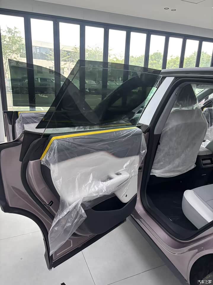 那个风暴粉, 我第一眼就相中了, 是那种低饱和度的颜色, 带点金属光泽, 太阳一照特别好看, 不扎眼也不俗气, 我们小区保安大叔都过来问这是啥颜色, 整个车身看着圆润饱满, 有点小清新范儿, 前脸的灯带辨识度很高, 加上隐藏门把手和无框门, 侧面线条特别流畅, 轮毂跟车身的比例也正好, 既有时尚感也有那种力量感。