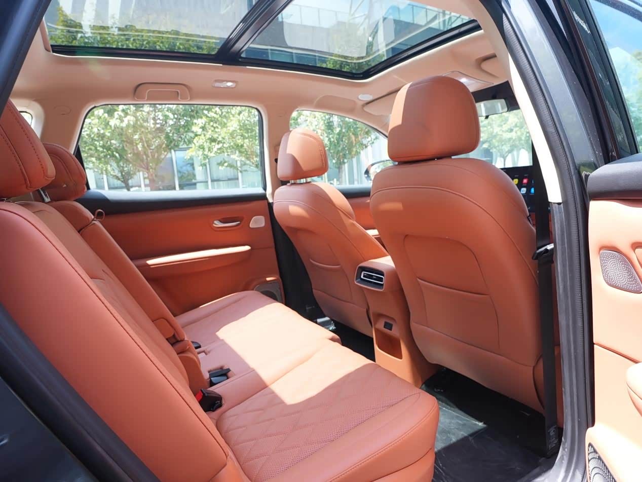 空间是我最看重的,毕竟要带一家人出门,挤着太难受,实际用下来,表现还算到位,前排我调完驾驶位,后排坐180cm的朋友,腿部还能剩两拳多,头部也不顶车顶,不会蜷着腿,后排坐三个人的时候,中间的人不用侧着身子,扶手放下来也不挤,比之前试驾的某款车强,后备箱日常用足够,平时放个婴儿车加两个24寸行李箱,空间还剩不少;周末带娃去露营,帐篷、折叠椅、野餐垫塞进去,不用像以前那样取舍半天,偶尔拉点大件,把第三排座椅放倒,能放个小推车或者行李箱,实用性没话说。