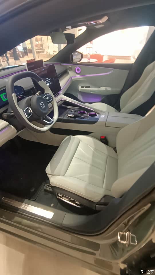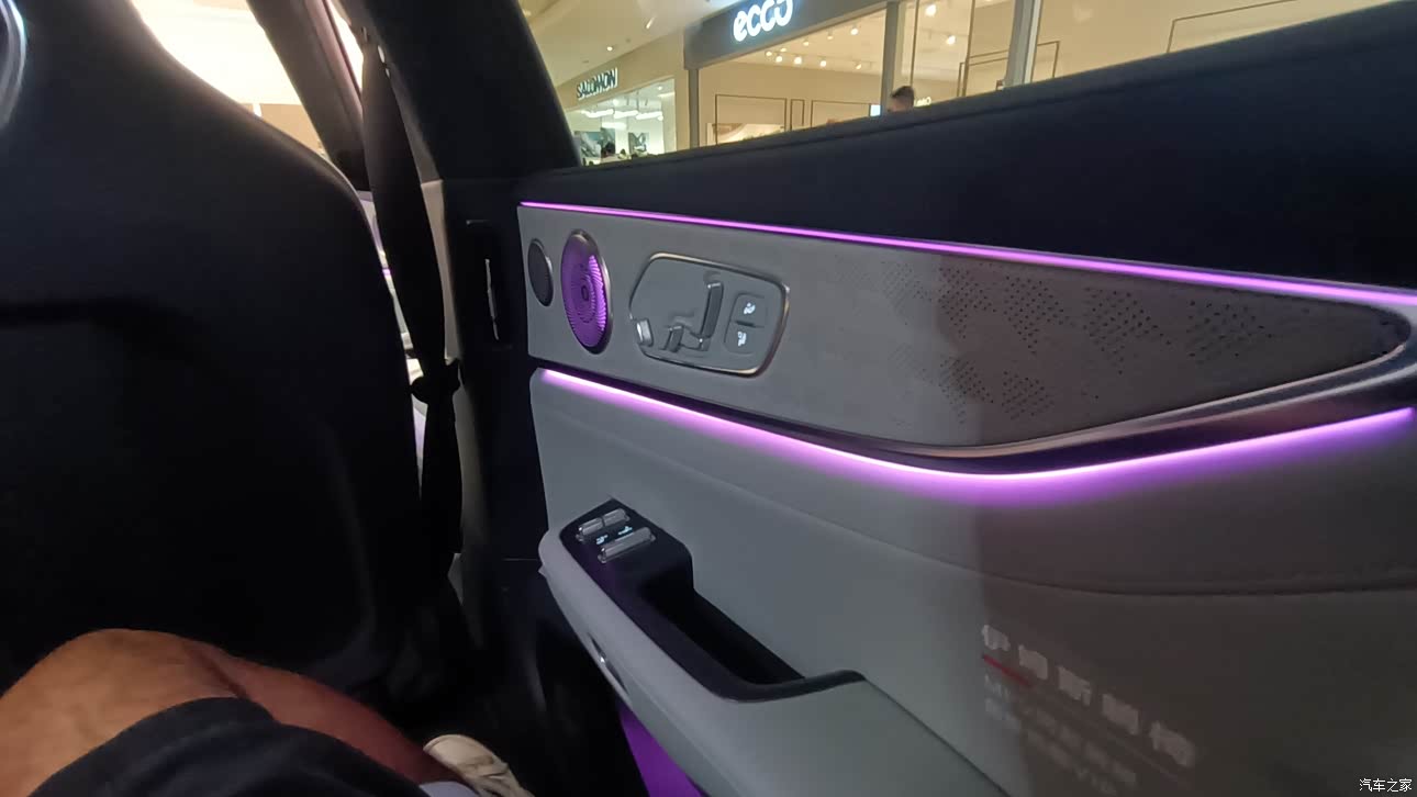 风格很漂亮,上黑下白的设计看着比较有新鲜感,同时又有很好的档次感。内饰还有非常丰富的细节,比如说像金属的音响罩比较高级的隐藏式车内氛围灯,各种哪怕皮和翻毛皮的拼接工艺,还有一个加分项就是这台展车也没什么异味。