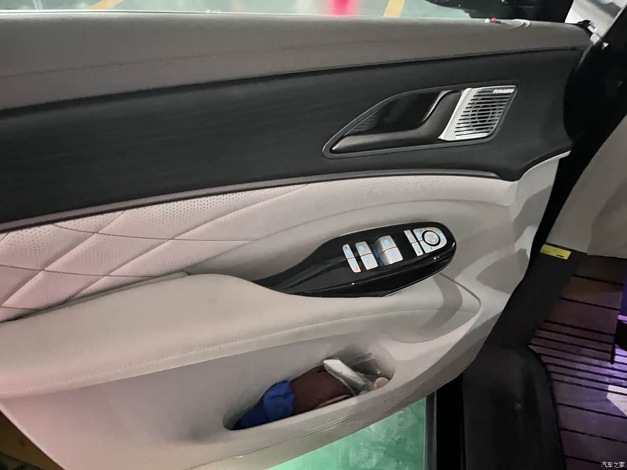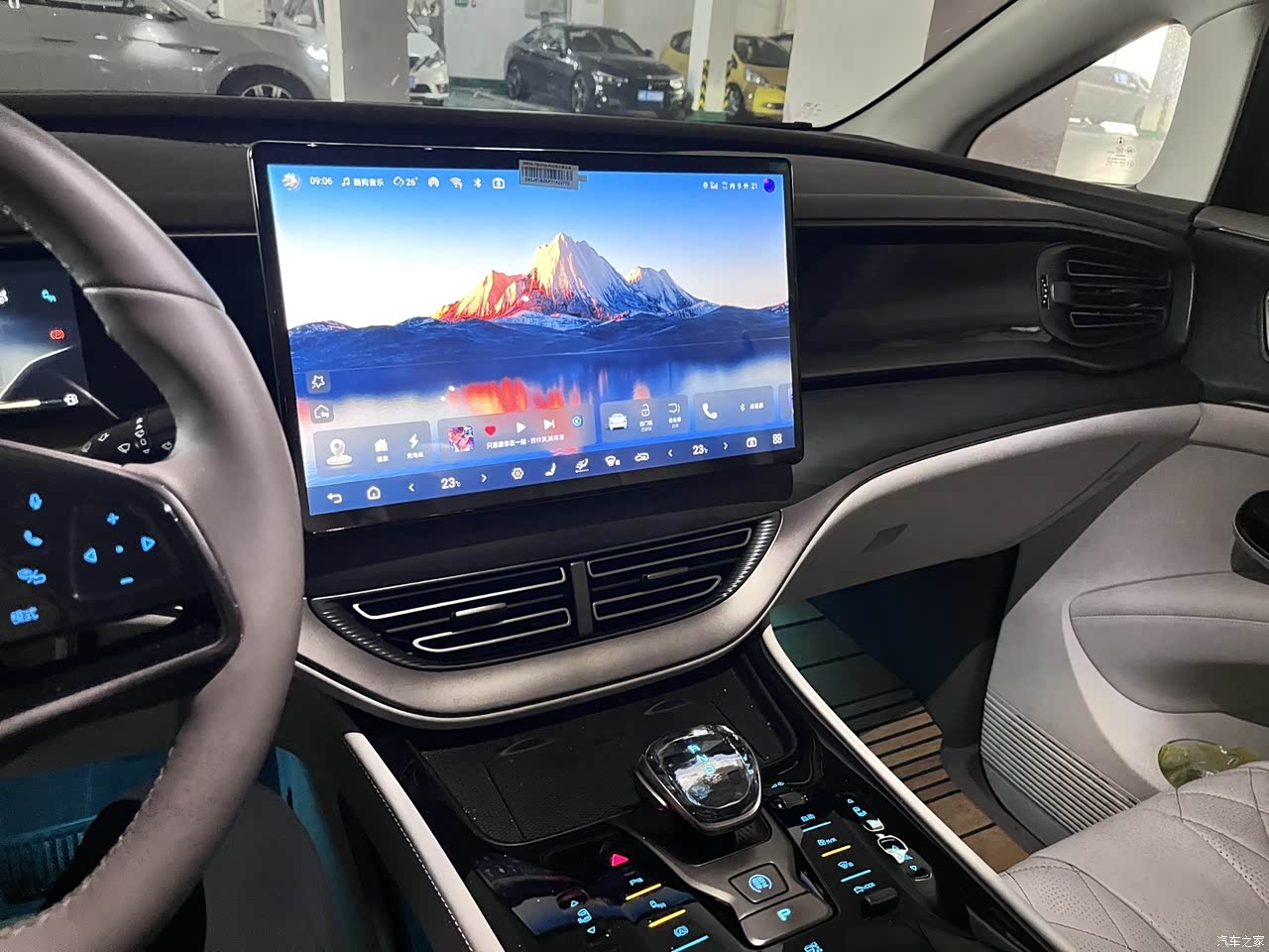 内饰还是比较豪华的,有新能源的感觉。坐进驾驶舱,最吸引眼球的就是中控大屏和扶手台的水晶挡把,科技感和豪华感营造得非常到位。大面积的真皮包裹和软性材质,手感很好。氛围灯有多种颜色和模式可选,晚上开车很有情调。 绝大部分能摸到的地方都是软的。但为了成本,在一些不太起眼的侧面和下方,还是用了硬塑料。不过,只要你平常不会刻意去摸那些地方,就完全不影响它整体的高级感。