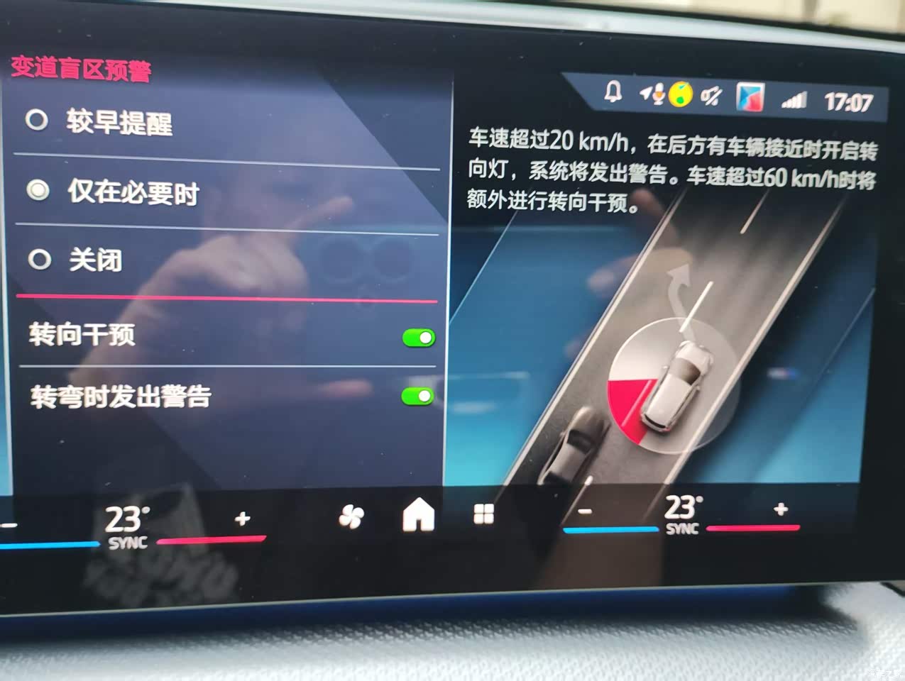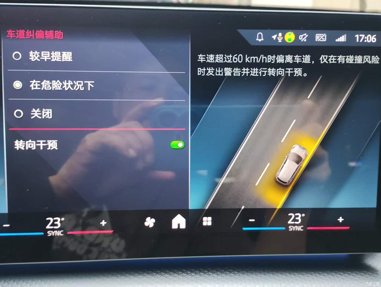 车道偏离预警并且带干预,可以自己开关,挺好用的。