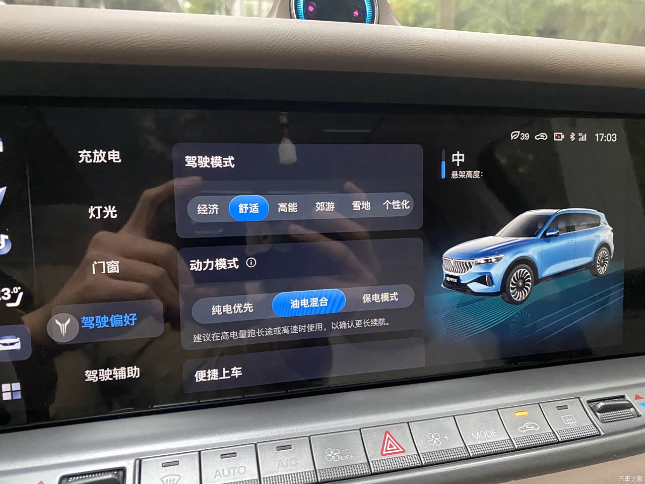 车机系统看着是挺唬人的,用起来就那么回事了,流畅度和智能化比不上现在的车,操作逻辑很奇怪,好多功能得在屏幕里翻半天,我还是比较喜欢物理按键,也没有个应用市场还不能自己装软件,就那么几个娱乐软件想装个听歌的APP都不行,悬架在速度超过40的时候就会降低,开烂路的时候也没办法提高速度。