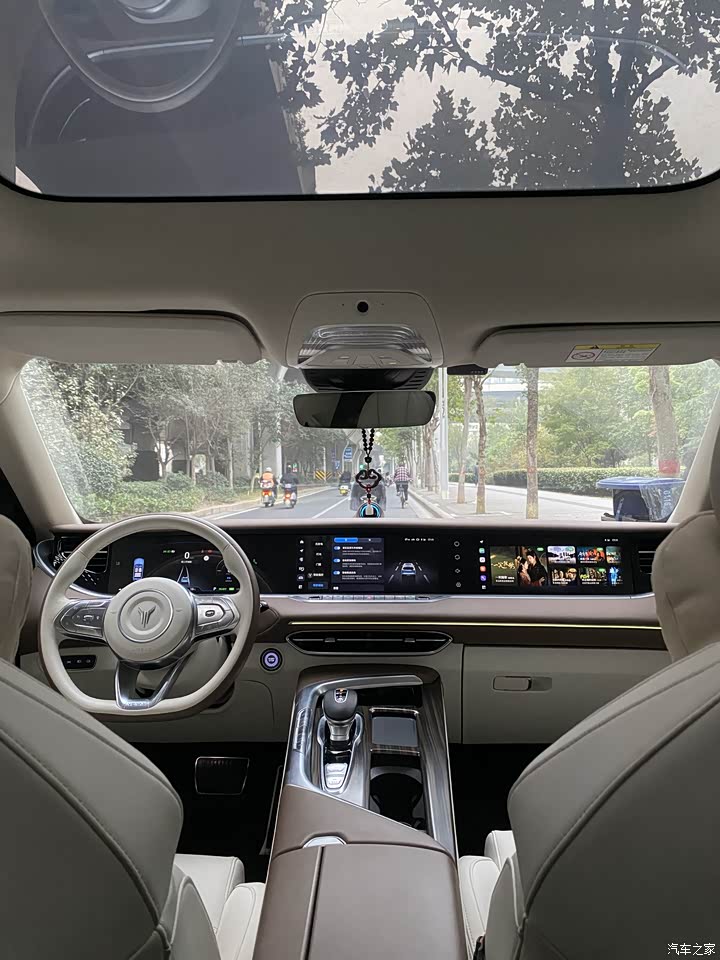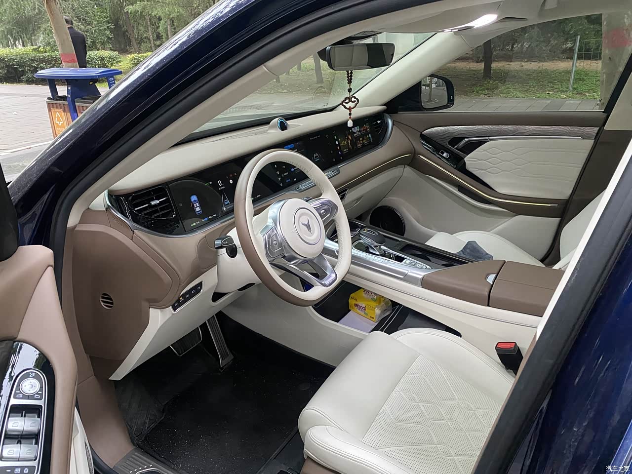 记得当时还是最打动我的是悬架,当然这个游艇车身,鲲鹏展翅的外观,那也是我超级喜欢的。再说这个空气悬架搭配全铝合金底盘这个用料,过减速带坑洼路时,那个效果不软不硬特别舒服,没有同级车型的那种弹跳感。后排纯平地板还有独立空调,比我那个老车CRV好多了。20%电量就会启动增程器,这样我也不用考虑低电量马上就要充电的烦恼了。高速上自适应巡航和车道保持,能让我轻松不少,360全景影像和自动泊车更是锦上添花。还有可升降三联屏,科技感确实拉满,朋友上车都忍不住夸这内饰比同价位BBA车还显档次。动力感觉不像电车,加速时候反应来的很快。