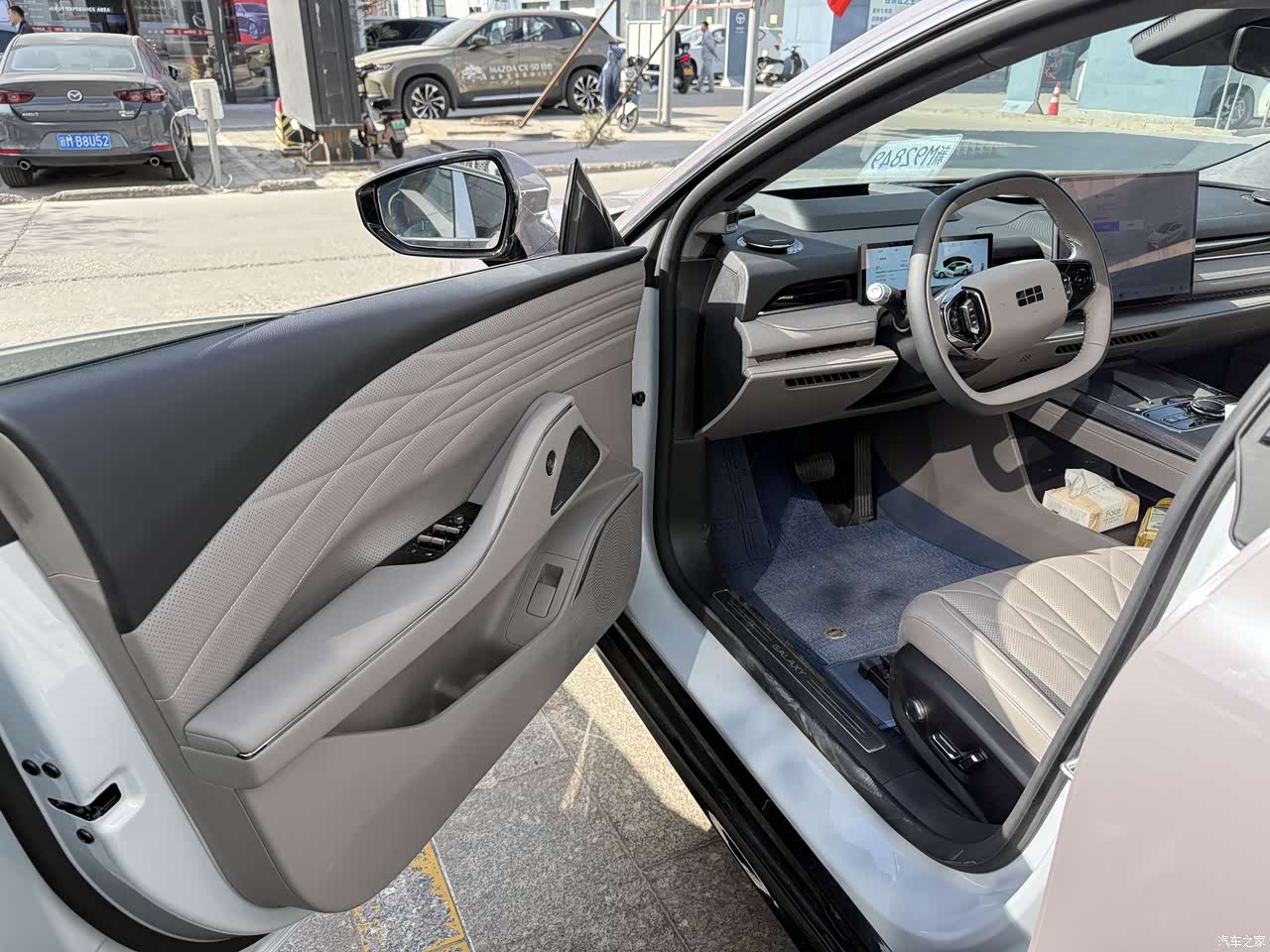 内饰做工很喜欢,基本都是软包设计,中控屏也很大,看起来很清晰。