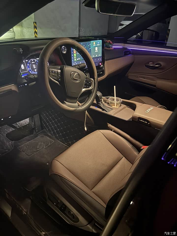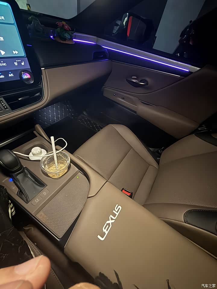 内饰当然选择茶珀棕了 其他配色不是很喜欢 中控我买了些小配件给他按上了 (我本人容易流汗 汗每次粘内饰上看的不舒服也) 氛围灯也不是很花里胡哨 这车斩男不斩女也是对的 哈哈哈哈