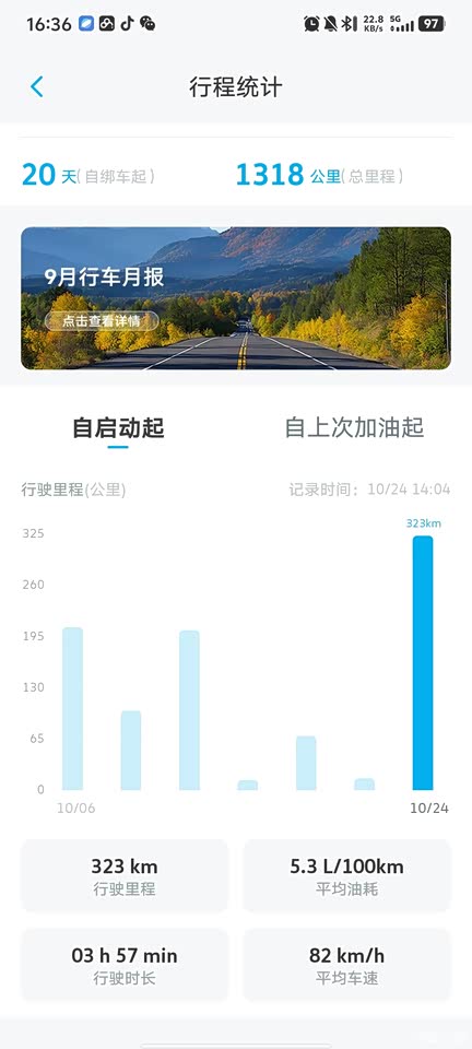 这个是最近一次跑高速的油耗我觉得比较满意哦,很省油,一公里三毛五这个样子,市区油耗高一点7个油只要看自己脚法啦