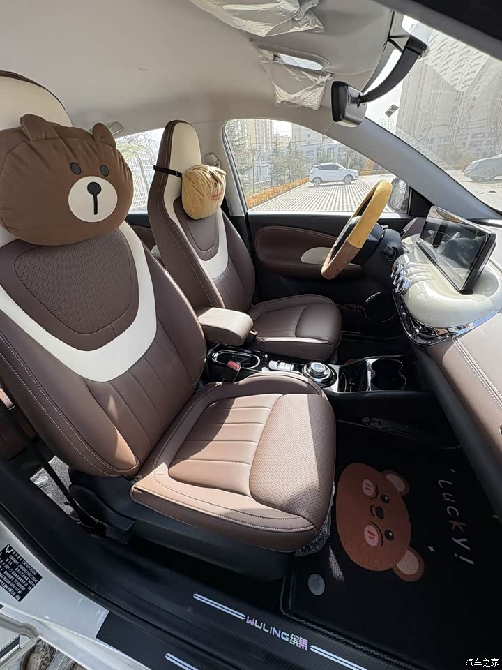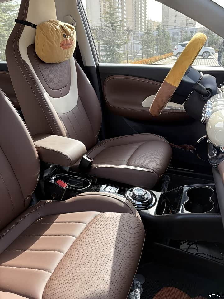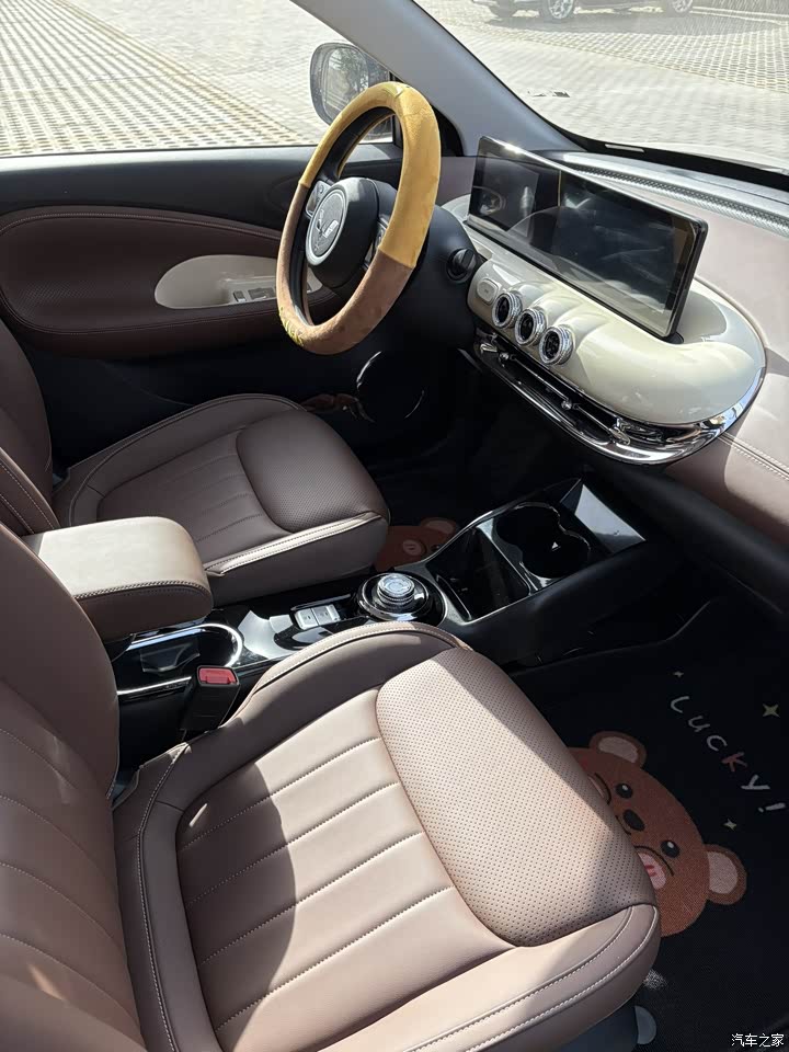座椅的料子应该是仿皮的(这个价位应该买不到真皮),摸着手感很好,坐着舒适度也很不错。买车到现在没有买过座套,就用了糯玉米车上退休下来的2个头枕,其他都是裸车原配。方向盘的手感一般,得买一个方向盘套,没有中央扶手,所以买个扶手箱是必须的。空调制冷制热都很强,比糯玉米强很多了,几乎是即开即冷。