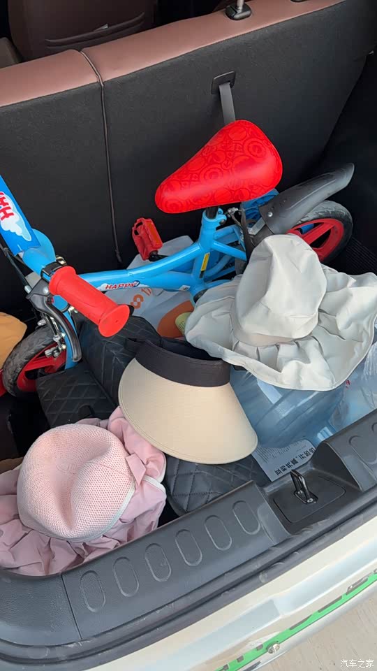 不要看车整体不长,但是前排正常的情况下,后排腿部和头部比我家另外一辆“小蓝”(紧凑型轿车现代菲斯塔)的乘坐空间还要大,这个车坐姿高,开起来视野好,可以说能达到小型SUV的视野了,这个车开多了,再去开“小蓝”感觉像是在地上坐着😬,有些压迫感。 后备箱真挺大的,我们把4岁儿子的自行车(不是小平衡车)一直在后备箱装着。 因为没有中央扶手,所以车内的储物空间还是有限,可以后期选装个中央扶手,另外中控屏幕下面一些地方有个挂钩,可以挂奶茶、包包、快餐之类的,虽然自己几乎没用过。🙄