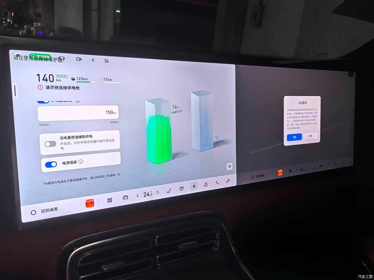 上周家人把车开出去玩了几天,出发时满油满电,里程数是2343,回来里程数为3093,实际行驶750公里,显示剩余里程160公里(剩余纯电续航9KM-13%、燃油续航150-16%)左右。测算一下,满油满电的行驶里程大约是在900公里左右。按照纯电实际达成率80%测算,(170 90-10)*0.8=200公里为纯电行驶;剩余约550公里左右用燃油行驶,汽油使用量60*84%=50.4升,百公里油耗约为9.1升。(因为还没重新加满油箱,所以以上数据均为车辆显示数据进行推算)
