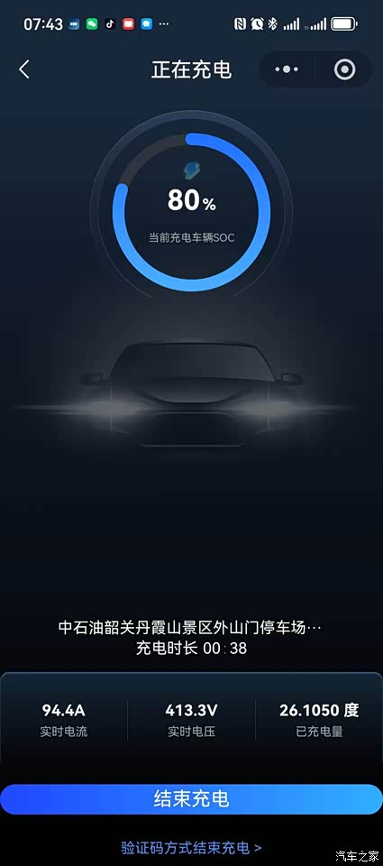 中途充了一次电,大约是25%到80%,增加的续航里程应该是90公里左右。