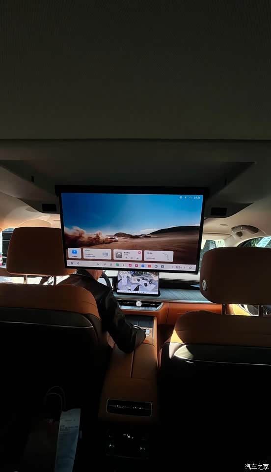 走进车内,豪华感扑面而来。大面积的软质材料包裹,搭配木纹饰板和金属饰条,质感十足,摸上去特别舒服。12.3 英寸的全液晶仪表显示清晰,各种行车信息一目了然;14.6 英寸的中控屏尺寸很大,操作流畅,支持分屏显示,我开车时可以导航,媳妇在副驾还能看视频,互不影响。HUD 抬头显示功能很实用,不用低头就能看到车速、导航等信息,提高了行车安全性。此外,车内还配备了吸顶大屏,后排乘客可以看电影、追剧,前排座椅的加热、通风和按摩功能,更是缓解了长途驾驶的疲劳,媳妇说坐这车比坐家里的沙发还舒服。后备厢侧置的压缩机冷暖大冰箱,夏天能放饮料,冬天能放热饮,细节处特别贴心。