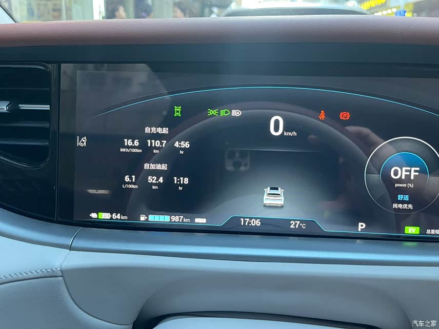 这台车是增程的形式,当电量不足时,增程器会启动,不用担心折在半路上。纯电续航方面Cltc续航为210km,在春秋季和夏季使用上。充一次电能够跑150km左右,电耗方便,18度电。冬天续航会少一些,纯电续航只到100km,电耗方面也要来到22度电。平时的话三天充一次电。使用快充时需要用50分钟左右,使用慢充的话需要耗费四个多小时。油耗方面当电量充足时,油耗为5~6升,当电量不足,油耗要到7~8升。实际体验下来,加满油,充满电情况下能够跑700km以上。