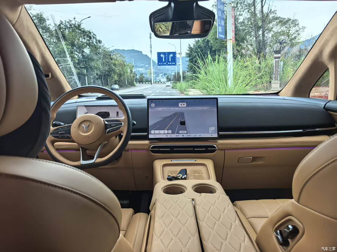 驼棕色内饰着实令人眼前一亮。其材质摸起来手感极佳,软软糯糯的,据称采用的是高级皮质材料,如此一来,不光手感上乘,而且几乎没什么异味,在提车当天打开车门之际,基本上是闻不到那种刺鼻的味道的,这一点对于家里有小孩的家庭而言,显得格外重要。整个内饰所营造出的氛围颇为温馨,再加上车内配备的氛围灯,当晚上开车之时,那种氛围感简直就被拉满了,家人纷纷称赞这款车的内饰甚至比家里的沙发还要舒适。