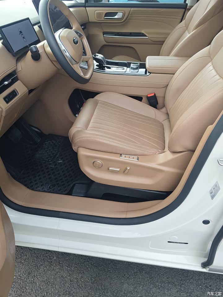 销售到我家楼下了,打电话我过去,第一眼看到这车确实很大气,我迫不及待的上车去感受,销售很热情的为我服务,给我录试乘试驾流程,这途中我也就观察了一下它的内饰,材质都还不错,无论中控台,还是座椅,扶手箱等,这些材质都还算是跟这大气的车型匹配,唯一让我觉得可以升华的地方就是它的门内部储物箱这些地方的材质有点粗糙了,不够光华,看上去就有点掉价,如果我买回来的话,我肯定是要美化一下的。