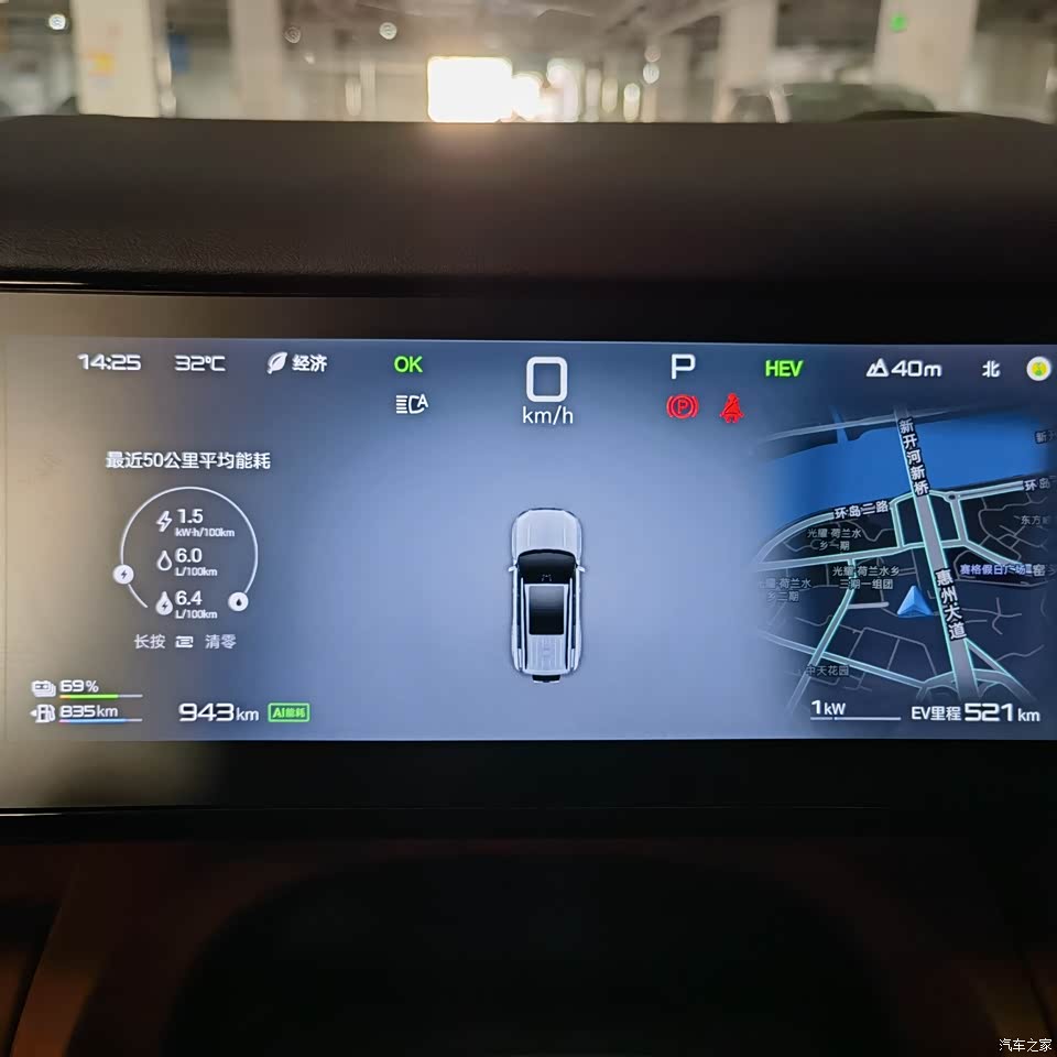 通过几次摸底,满电情况,开车开空调,停车开哨兵模式,能够市区跑150km,达成率80%。满油续航还没测,等有时间来一次度假,才能进行一次长测。由于是磨合期,尽量用HEV模式开。