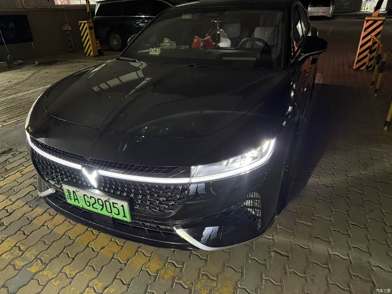 这车长得特别大气,车身比邻居家的帕萨特还长,看着很舒展。车头的格栅一条条排列得很整齐,中间的车标晚上会亮蓝光,车门上的门把手是藏起来的,解锁了才弹出来,洗车的时候不用擦缝里的灰,特省事。车尾是贯穿式的尾灯,刹车的时候全亮起来,后车看得清清楚楚。我选的黑色车身,太阳底下有金属光泽,还耐脏,开出去别人都问这车不便宜吧,特有面子 。