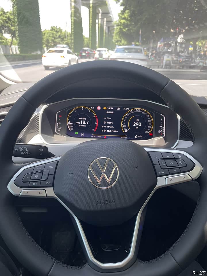 1.5T 的黄金动力哲学 这台探岳 300TSI 搭载的1.5T 发动机+7速双 离合组合,日常驾驶给我的最大感受是"够用且聪明”。160马力的最大功率推动这台1.6 吨的 SUV绰绰有余,低扭响应积极,起步时即使满载也不会显得吃力。高速行驶开启 ACC 自适应巡航后,车辆能精准保持跟车距离,车道保持系统在弯道的修正也很线性。