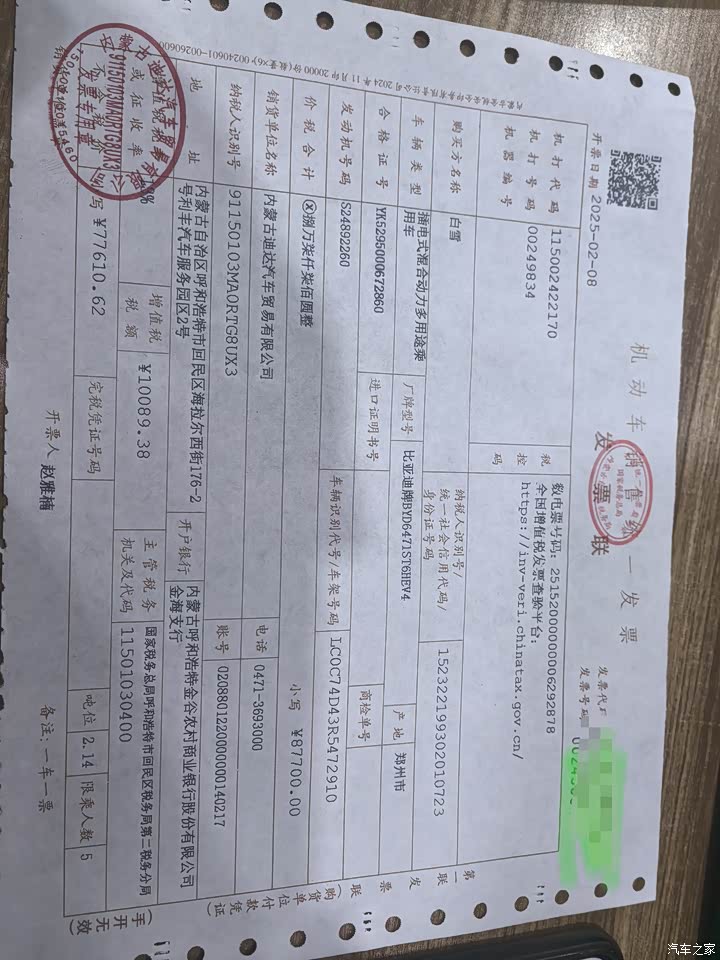 家里增加了新成员,原有的出行工具已经无法满足携带婴儿车出行物资自己保障乘坐舒适度的需求,于是我们选择更换家庭用车,我们的目标预算是在10万元,于是我们购买了2024款宋pro71km,车辆的官方指导价是109800元,通过4S店1万3千元的厂家补贴,9100元的贷款手续费补贴,以及1万4千元的置换补贴,核算下来还是比较优惠的,保险花了5360,上牌代办花了1千元,我们2月8号付款,2月10号提车,总体来说过程比较高效顺畅,家用车动力是完全够用的,但是比之前的油车,每个月省了300块钱,总有人说油电混动车不保值,但是我觉得10万块钱的车子,就算你开了十年,每年才合下来1万块钱,我觉得也是合算的,像我之前开长城M41.5的排量,每个月上下班通勤要400的油钱,自从换了宋pro,以后每个月充电100元即可,下班我们一般都会用电,如果是外出用油,整体来说用油也会比之前的长城M4省油很多很多,前几天我们去了包头,加100的油,来回是戳戳有余的,而且在开车的过程中几乎没有噪音,也没有油的味道,车子整体来说要比较宽敞一家五口出行也没有压力,后备箱很大,可以放很多的东西中控操作台也比较方便,我们买的这款没有座椅加热功能,但是可以通过手机进行操作,提前把空调打开,在冬天出门,只要提前把空调打开,一进车子里面就是暖和的,带孩子出门就完全没有压力了。
