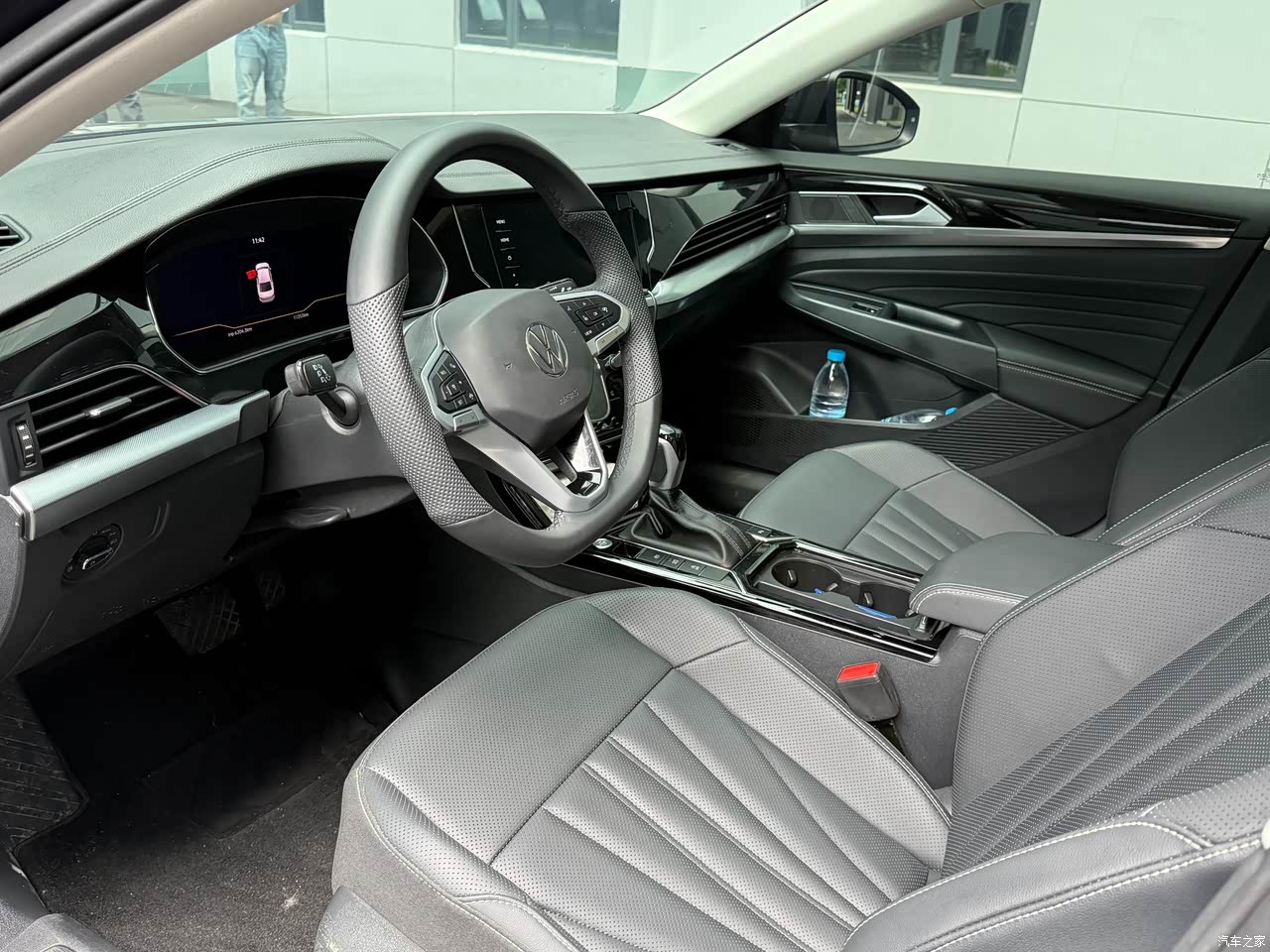 中规中矩的大众风,软包材质不少。吐槽一下中控大屏,指纹收集器!现在常年备块擦屏布。不过实体按键保留得多,开车时盲操方便,比某些全触屏的车实用。