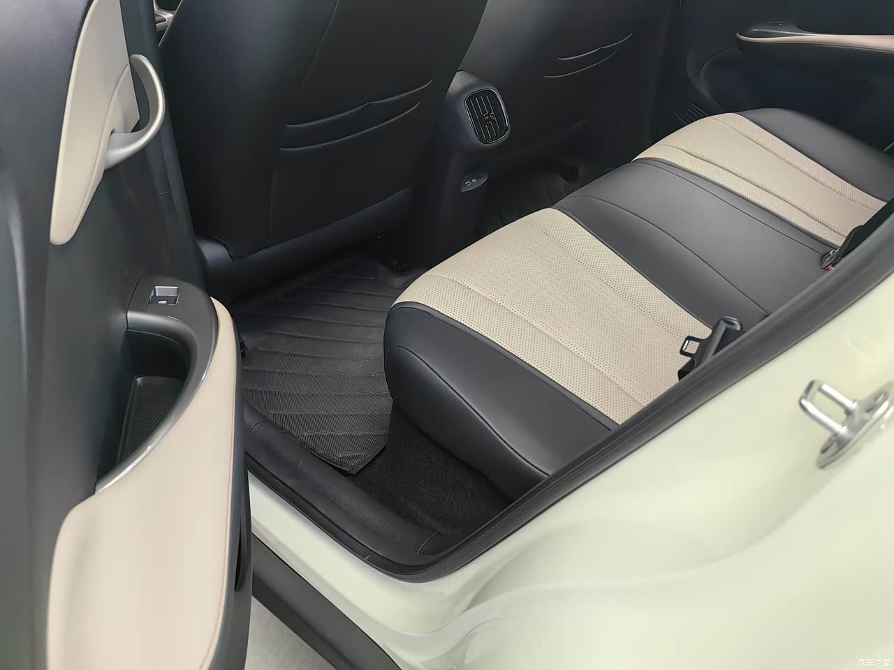 坐进车里,那个波浪形中控台和漩涡出风口设计感十足,到处都是海洋元素。用料也挺良心,能摸到的地方基本都是软的。中控台下方的镂空设计超实用。