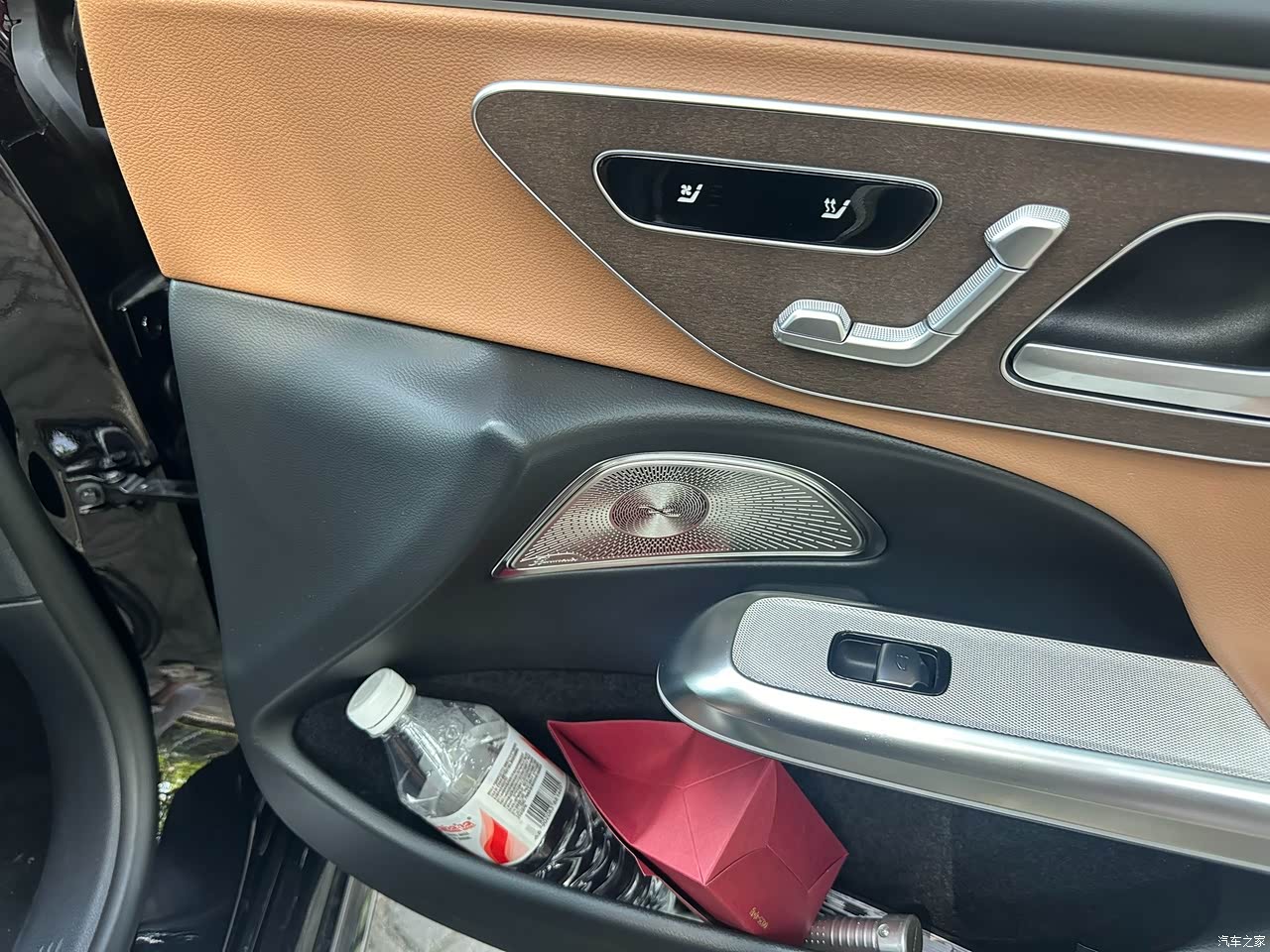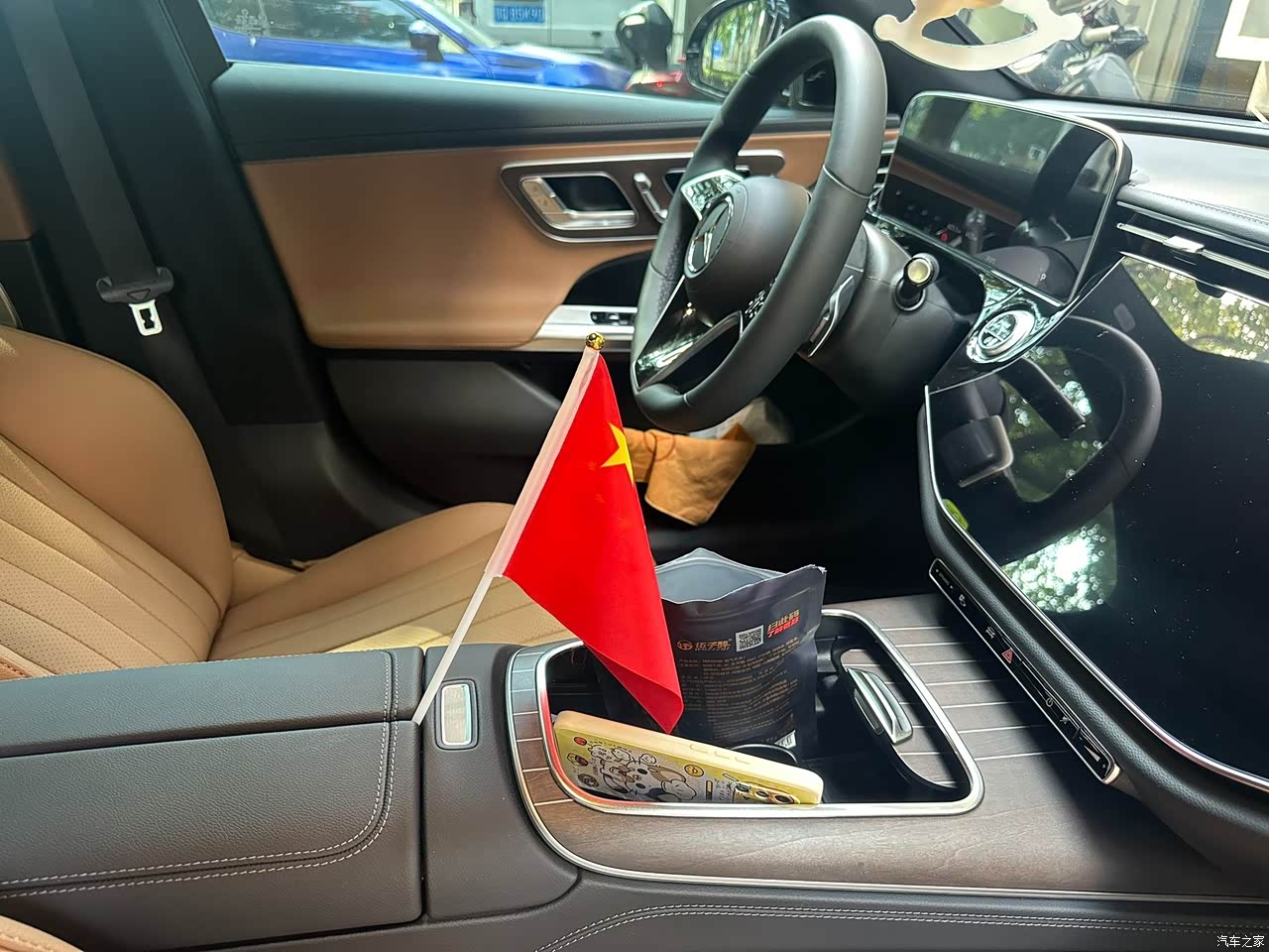 内饰豪华感是够的,棕色内饰还是挺上档次的,晚上氛围灯也很舒服,但毛毡材质和减配的遮阳帘有点廉价,副驾屏基本就是个摆设,平时也不怎么用。