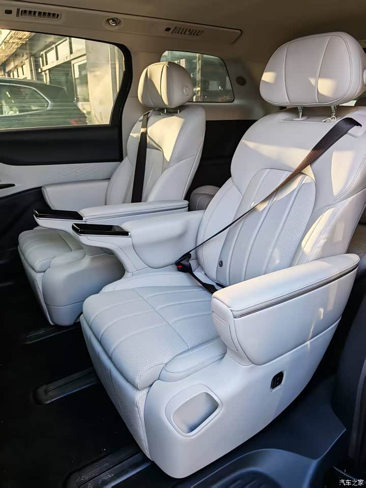 智能化方面更不用说了20扬声器的丹拿音响音质绝了,加上纤柔麂皮绒顶棚和环绕氛围灯,晚上开车氛围感直接拉满,孩子每次上车都要喊"开星空模式"!最贴心的是第三排,不仅有4向电动调节,还带加热功能,以前坐MPV总被嫌弃的"后备箱位",现在孩子能在上面玩半天。后备厢平时放3个登机箱没问题,放倒三排直接扩展到2700升,上周搬家连婴儿车带折叠床都装下了 。