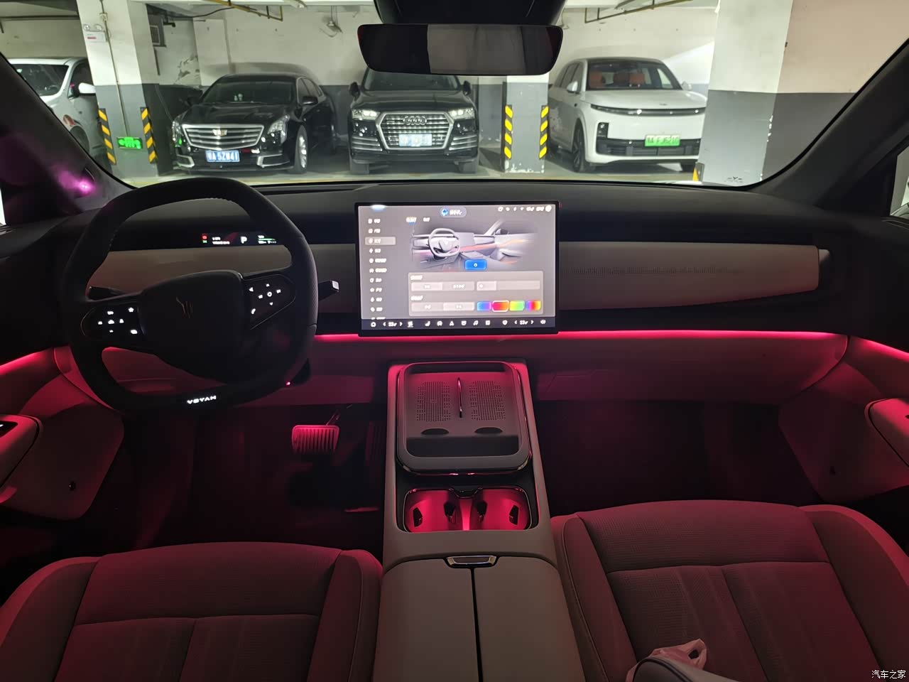 氛围灯营造效果我是蛮喜欢的,感觉车是高级的。前后车灯我没太注意,正常水平吧。内饰比较简洁,属于特斯拉流派哈哈哈。有一点要注意,他的方向盘上的按键并非物理按键,而是触屏,虽有振动效果,但还是觉得有点别扭。