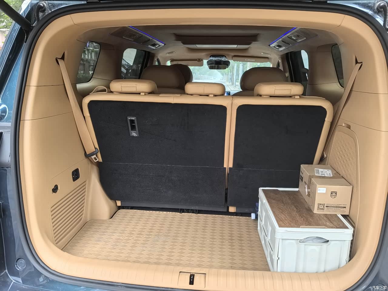 第三排所呈现出的空间远远超出了预期。我爸身高175cm,当他坐进去之后,腿部居然还留有两拳的距离,头部空间同样也很充足。在以往驾驶SUV的时候,他坐在后排总会抱怨像是在蹲马步,可如今每次都会主动选择坐第三排。只是第三排座椅存在一个小斜坡,长时间坐着或许会有些许不适感,并且该座椅不能前后调节,倘若能够对此做出改进,那就更加完美了。