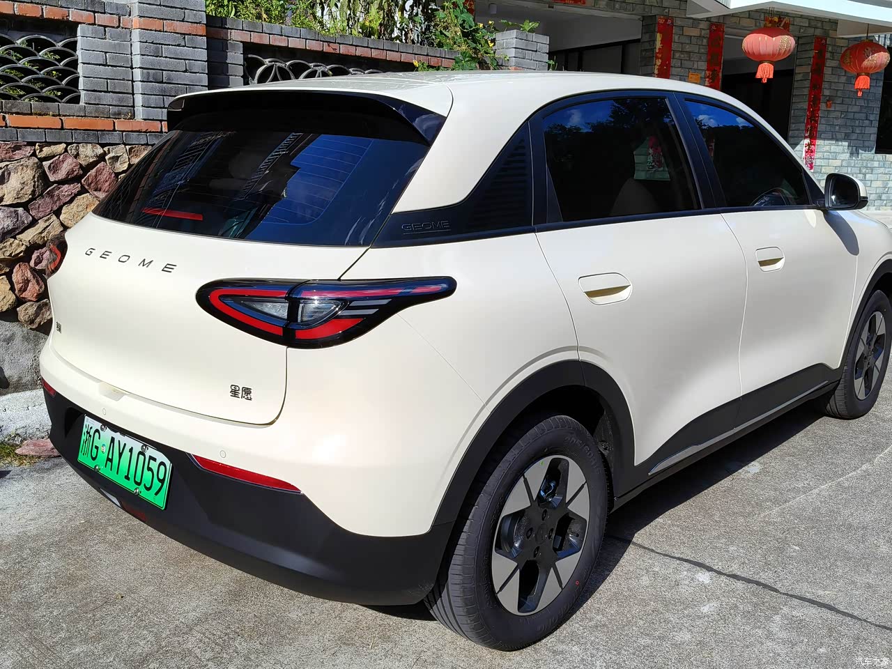 车身圆润很有流畅感,车头主灯看着椭圆三角和圆圆的车头搭配在一起很耐看。香草米的车色不同角度不同的光泽,远看近看都很有时尚感。