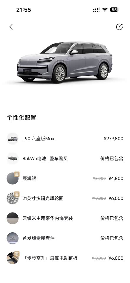 静安补贴2000,预定2000抵5000,选装基金5000。选装有6折优惠,颜色和轮毂纯粹是个人喜好和为了颜值,选择了电动踏板,上下车真的很舒服,老人小孩家庭必备。