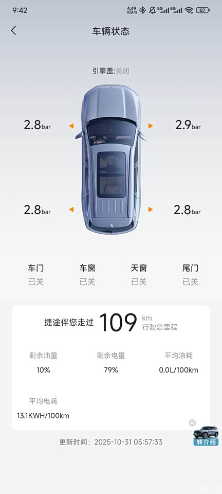 109km行驶里程