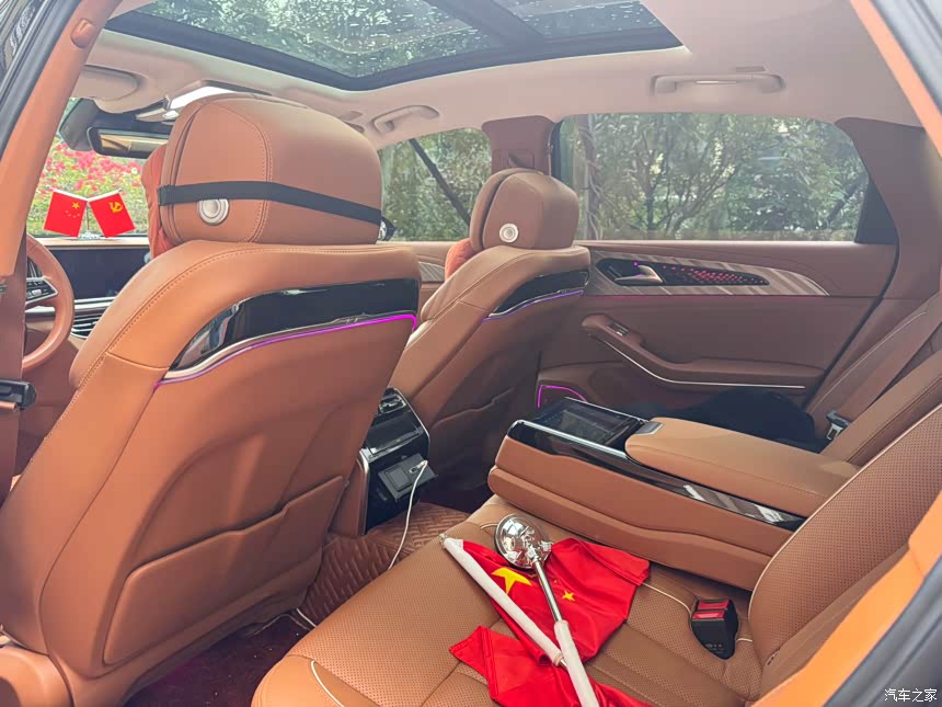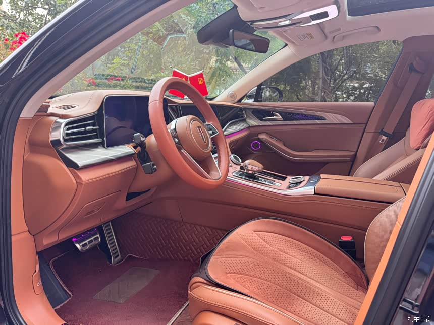 内饰做工相对来说挺精细,真皮座椅非常舒服,氛围灯也很饱和给驾驶员和乘坐者的体验完全拉满。