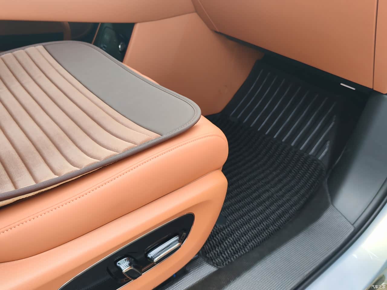 内饰为橙色,色调比较时尚,刚开始看有点不习惯,开了半个月,感觉换个颜色也挺好,毕竟要紧跟时代的潮流。